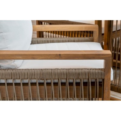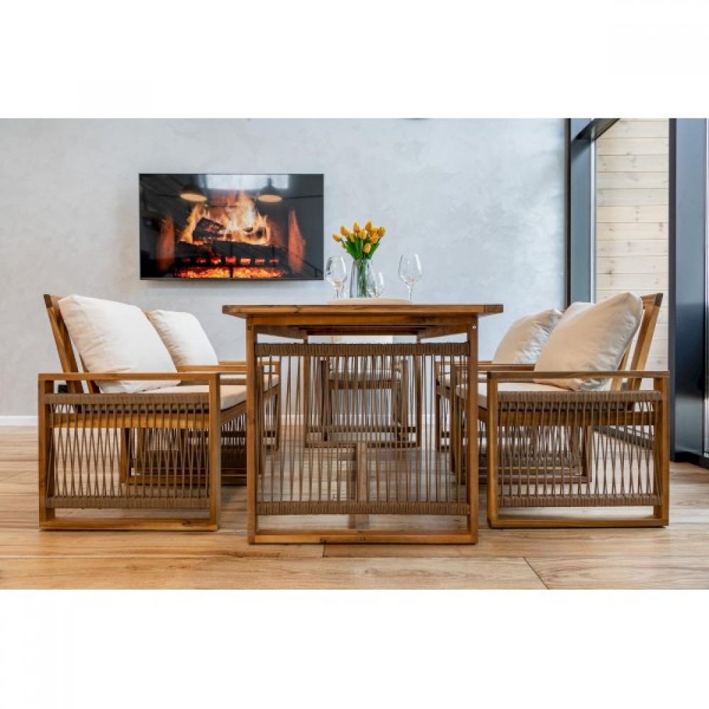 Обивка кресел выполнена из роупа бежевого цвета, который не только выглядит стильно, но и обладает устойчивостью к экстремальным погодным условиям. Роуп не выцветает под воздействием солнца, что позволяет сохранить первоначальный вид мебели на протяжении длительного времени.