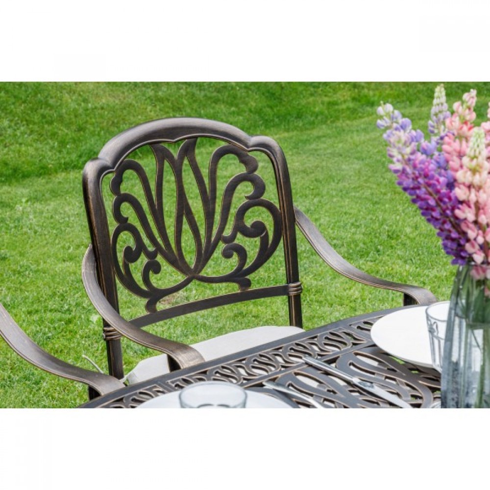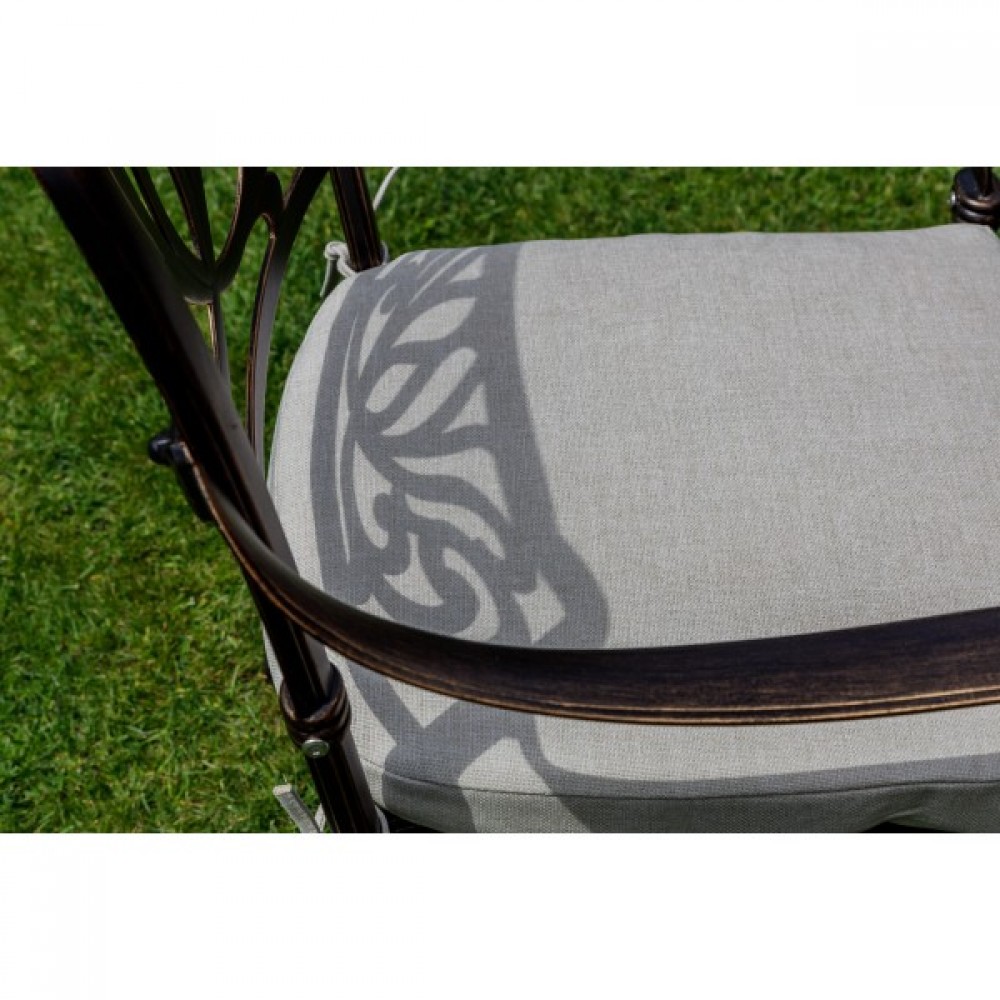 Кресла изготовлены из прочного литого алюминия, который обеспечивает надежность и долговечность конструкции. Этот материал не подвержен коррозии и легко чистится, что делает уход за мебелью максимально простым.