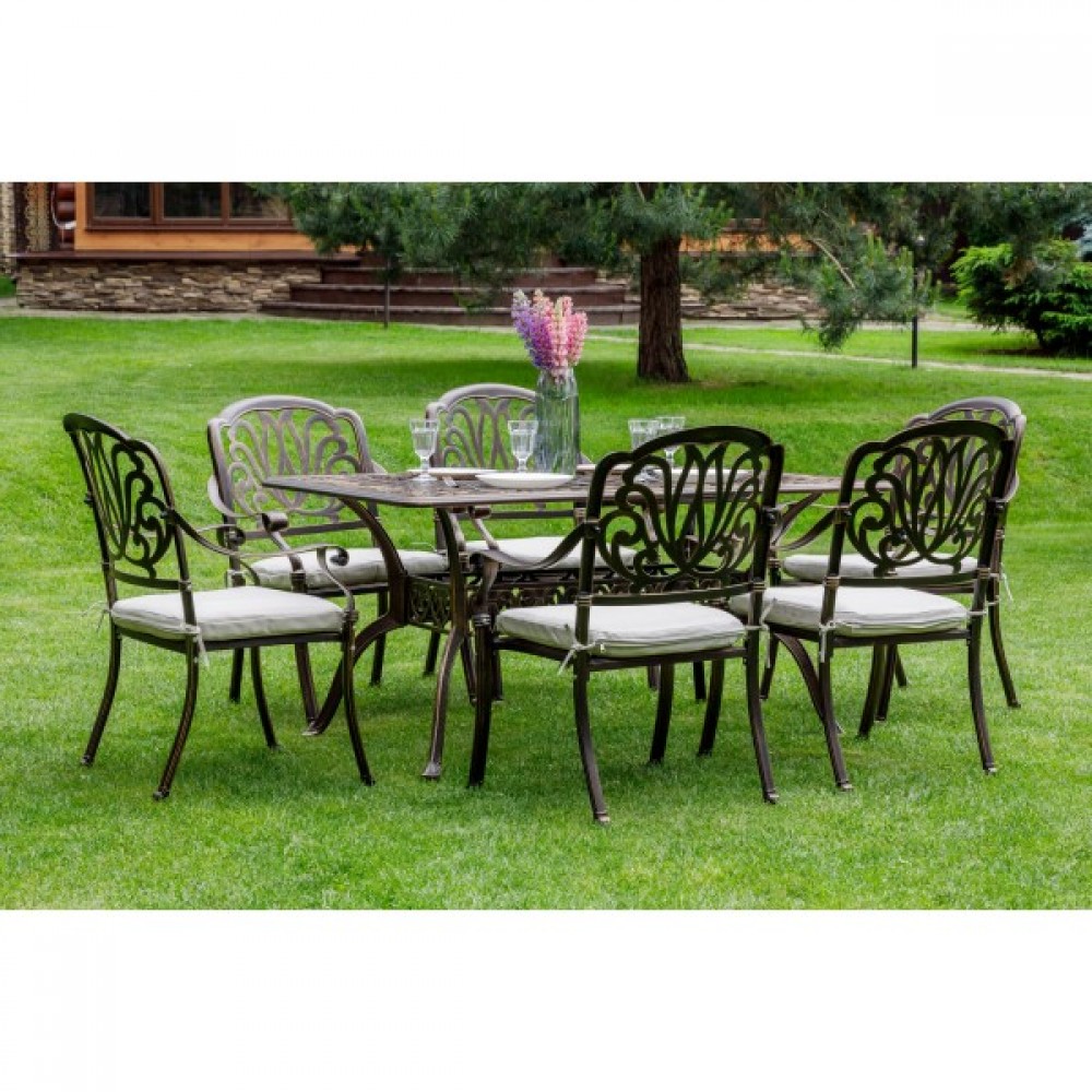 Эргономичный дизайн кресел обеспечивает комфортное сидение, а стильное исполнение придаст вашему саду или террасе особый шарм. Прямоугольный стол с элегантным дизайном и прочной столешницей идеально дополнит общий вид комплекта.