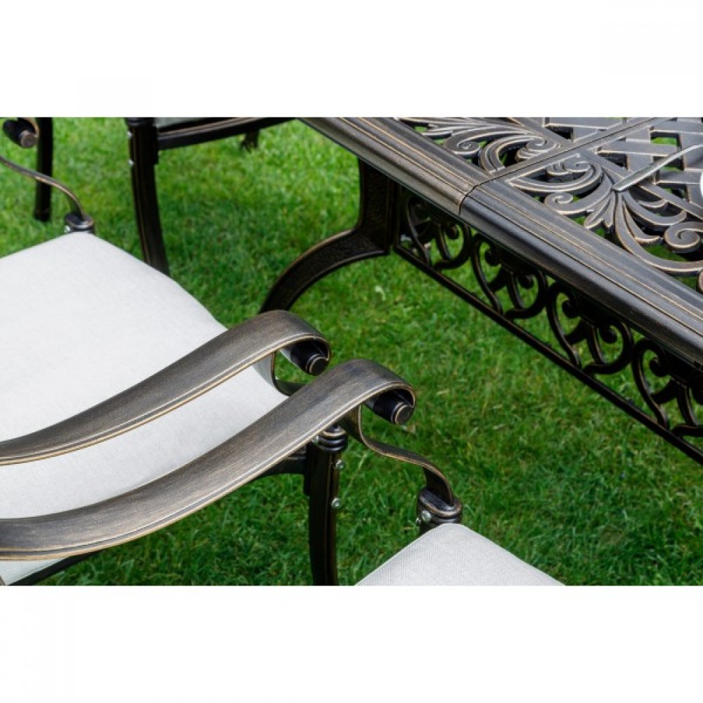 Кресла изготовлены из прочного литого алюминия, который обеспечивает надежность и долговечность конструкции. Этот материал не подвержен коррозии и легко чистится, что делает уход за мебелью максимально простым.