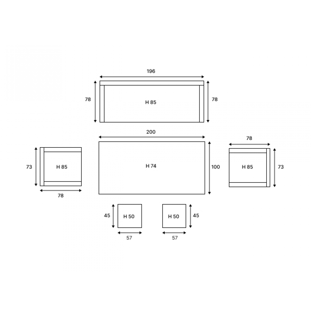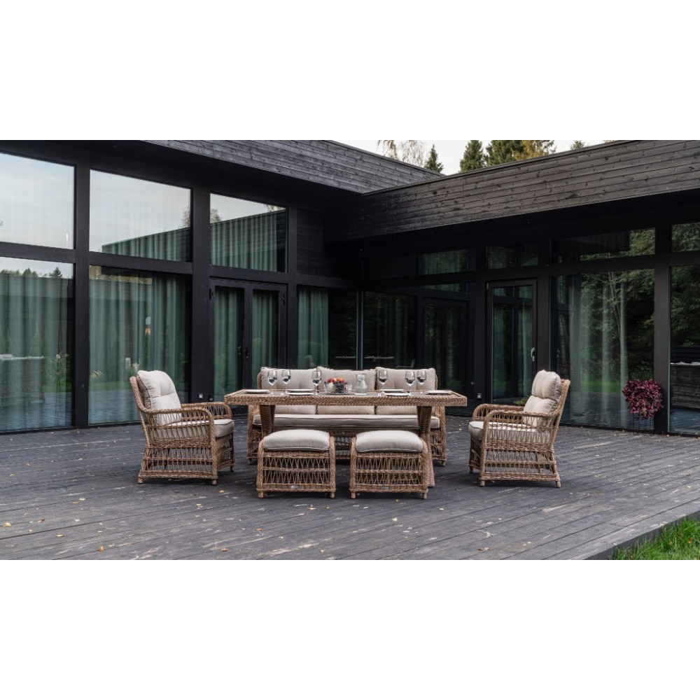 Комплектация: обеденный стол, 3-местный диван, 2 кресла, 2 пуфа