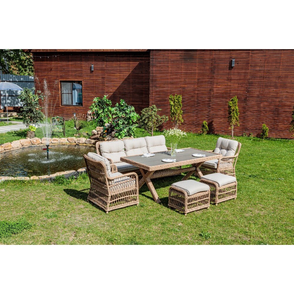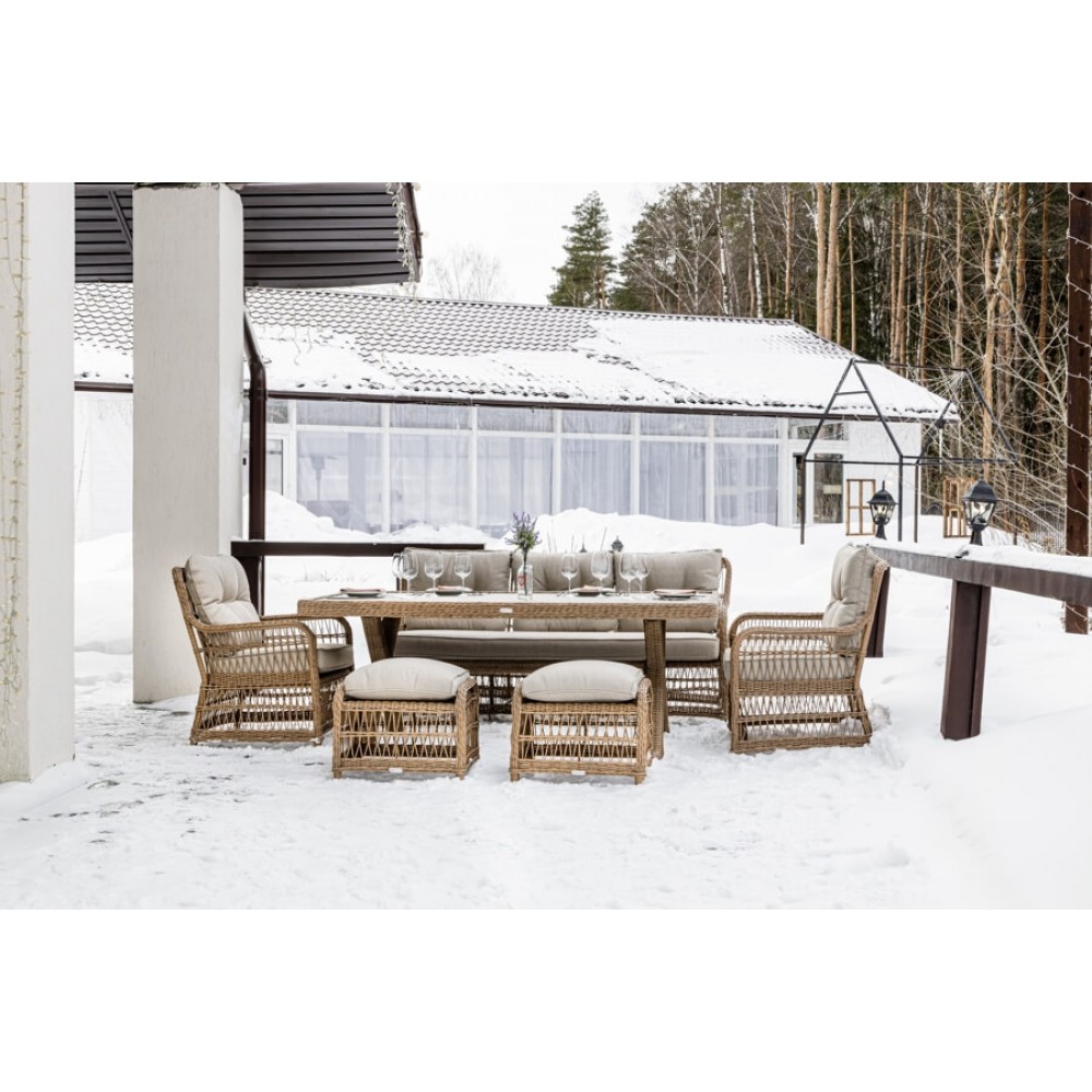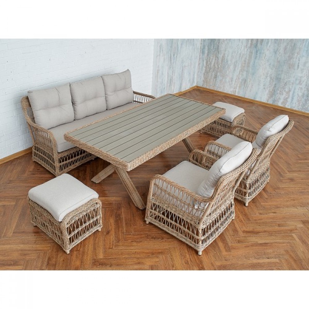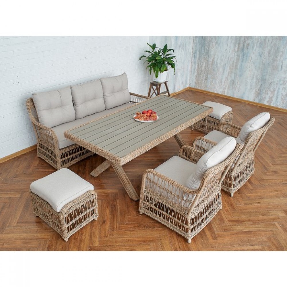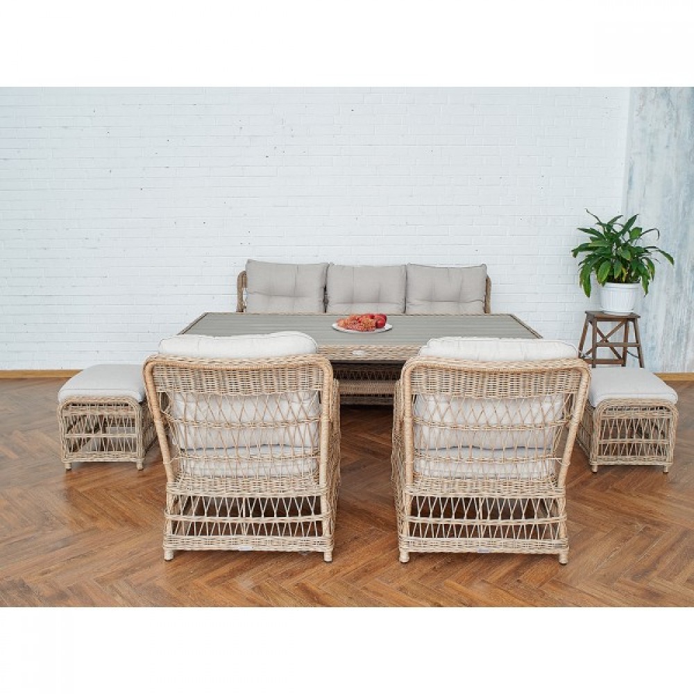 Комплект ALBERT, цвет натуральный, искусственный ротанг, каркас алюминий, столешница искусственное дерево, состоит из 3-х местного дивана, 2-х кресел, стола и 2-х пуфов