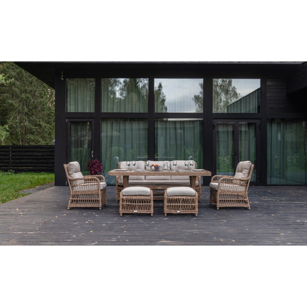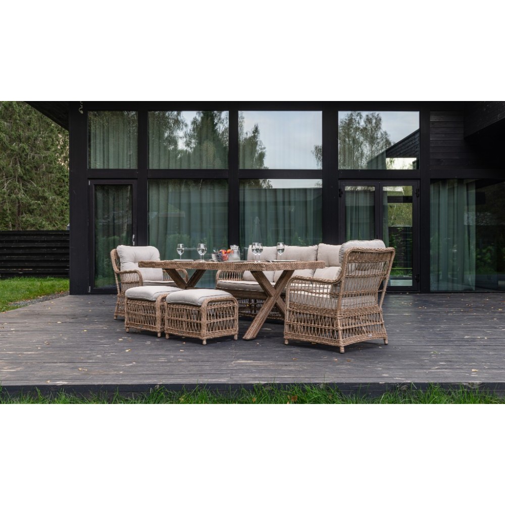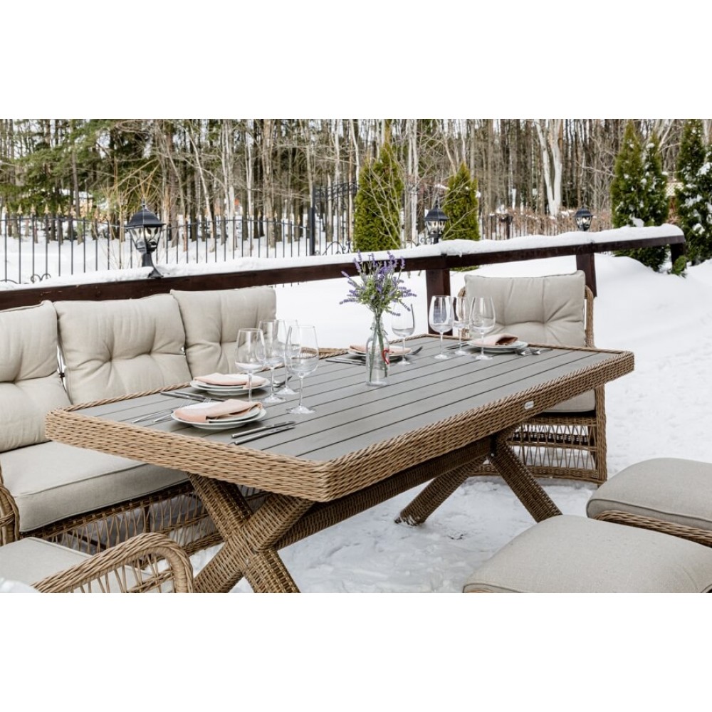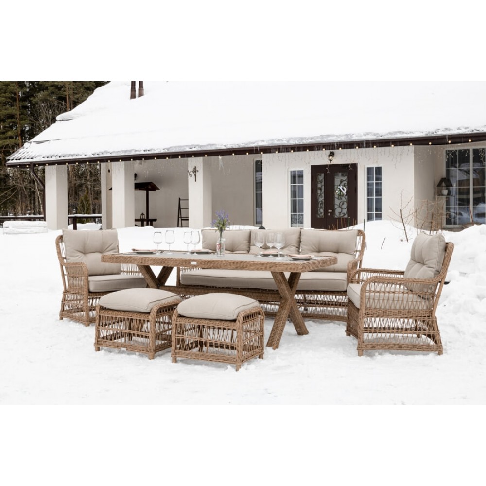 Комплект ALBERT, цвет натуральный, искусственный ротанг, каркас алюминий, столешница искусственное дерево, состоит из 3-х местного дивана, 2-х кресел, стола и 2-х пуфов