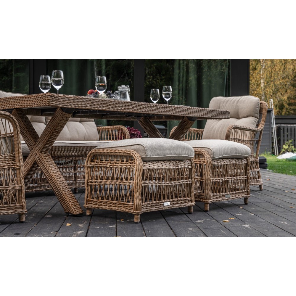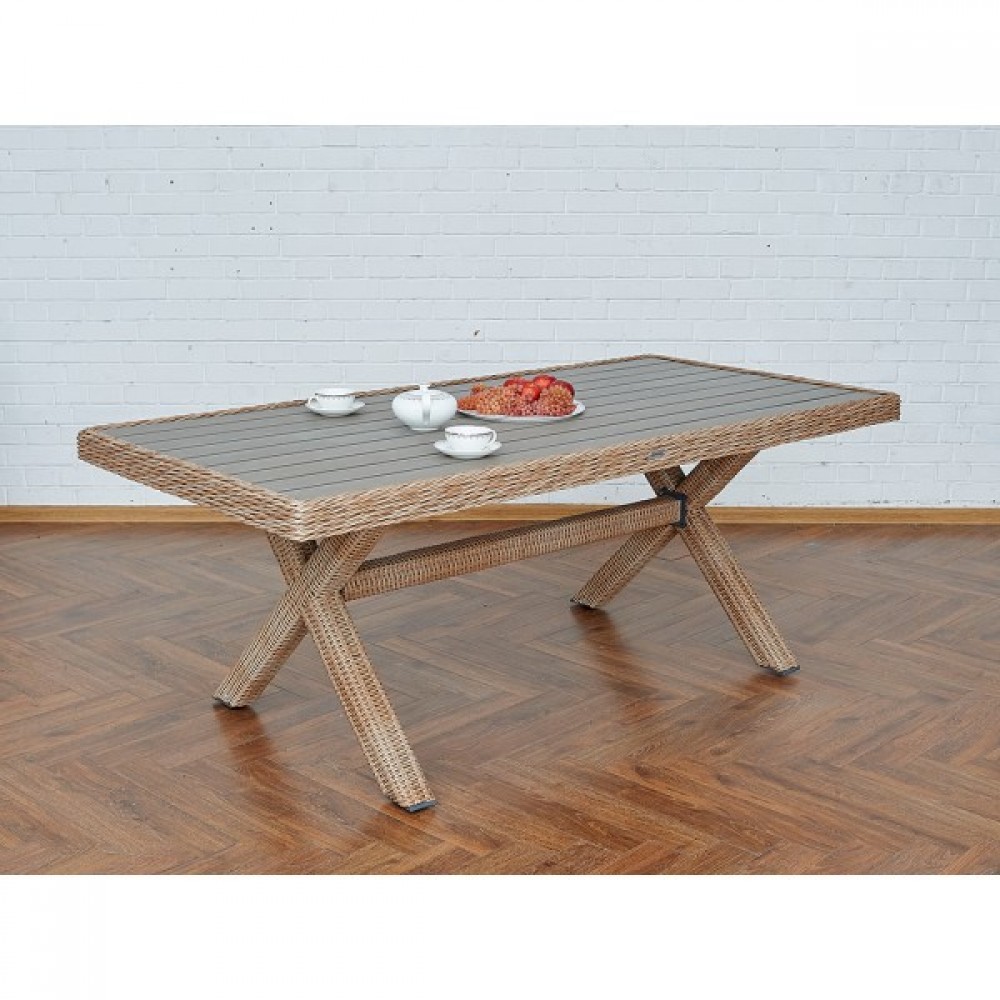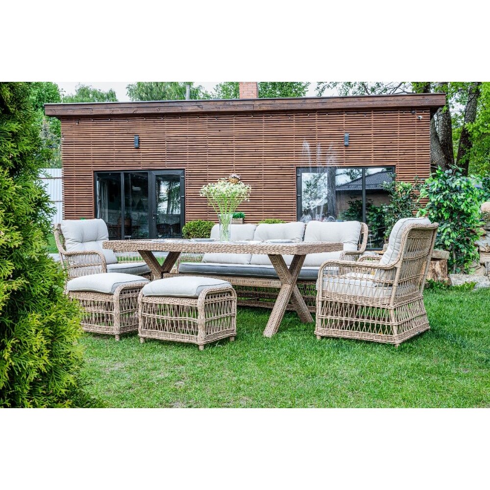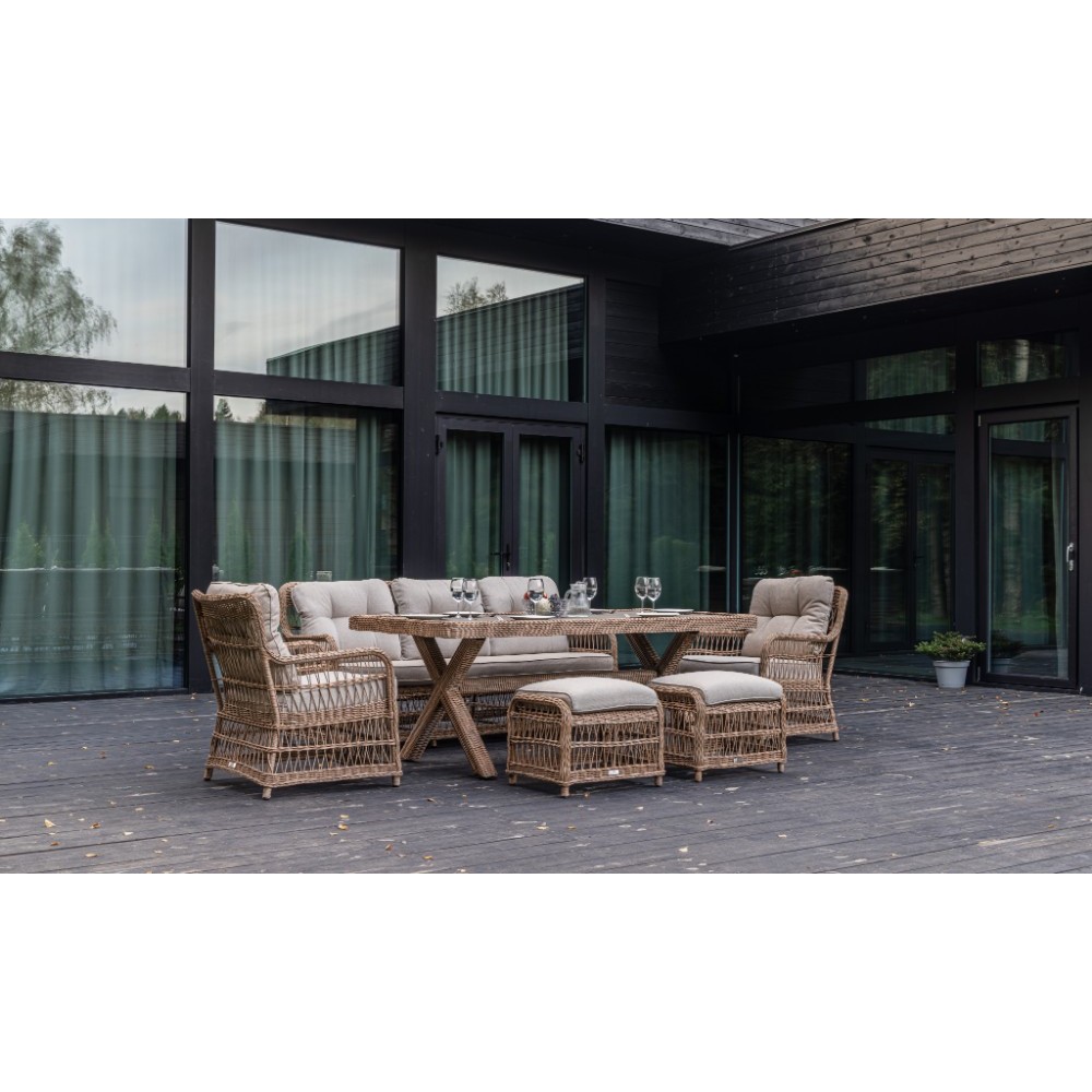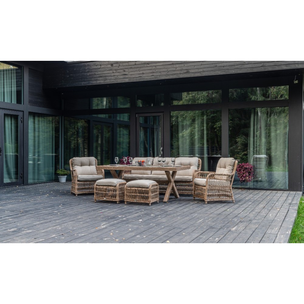 Комплект ALBERT, цвет натуральный, искусственный ротанг, каркас алюминий, столешница искусственное дерево, состоит из 3-х местного дивана, 2-х кресел, стола и 2-х пуфов