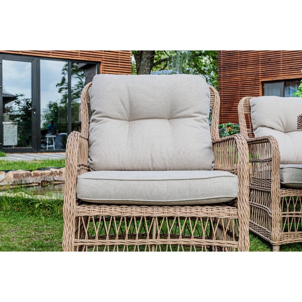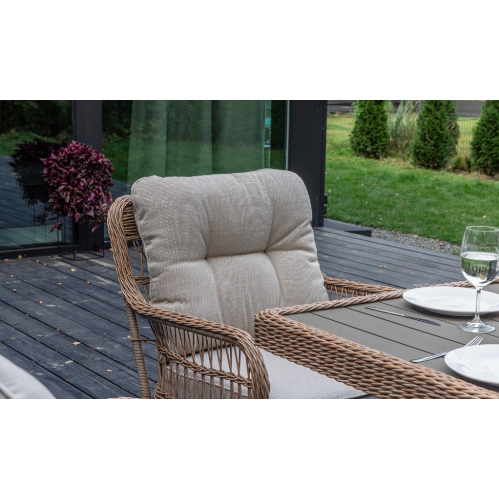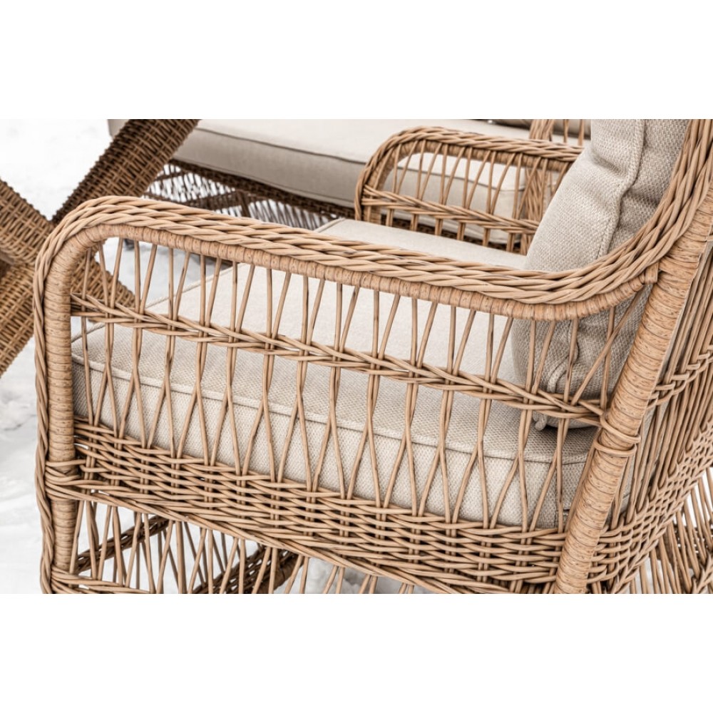 - Материал: поливуд (искусственное дерево)/искусственный ротанг/алюминиевый каркас/подушки-Olefine