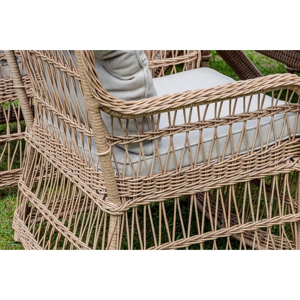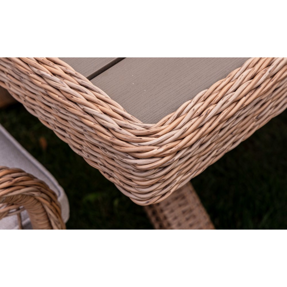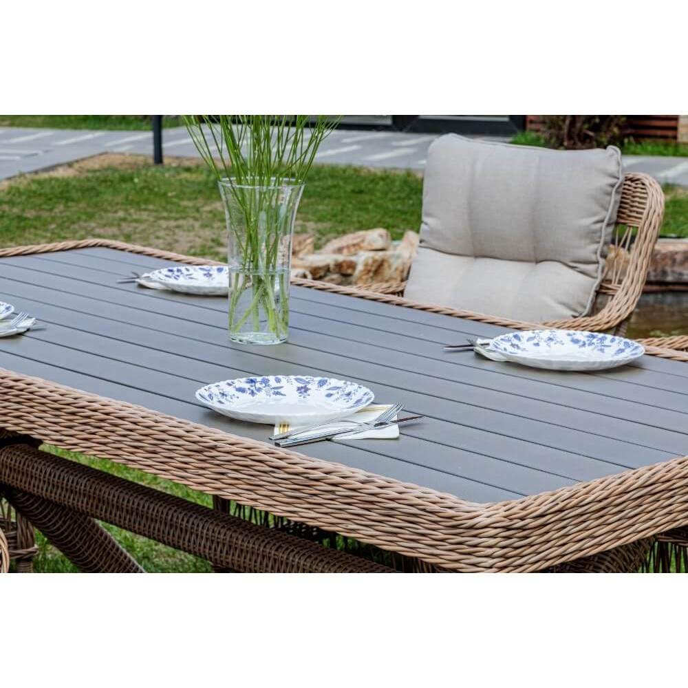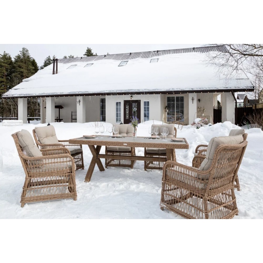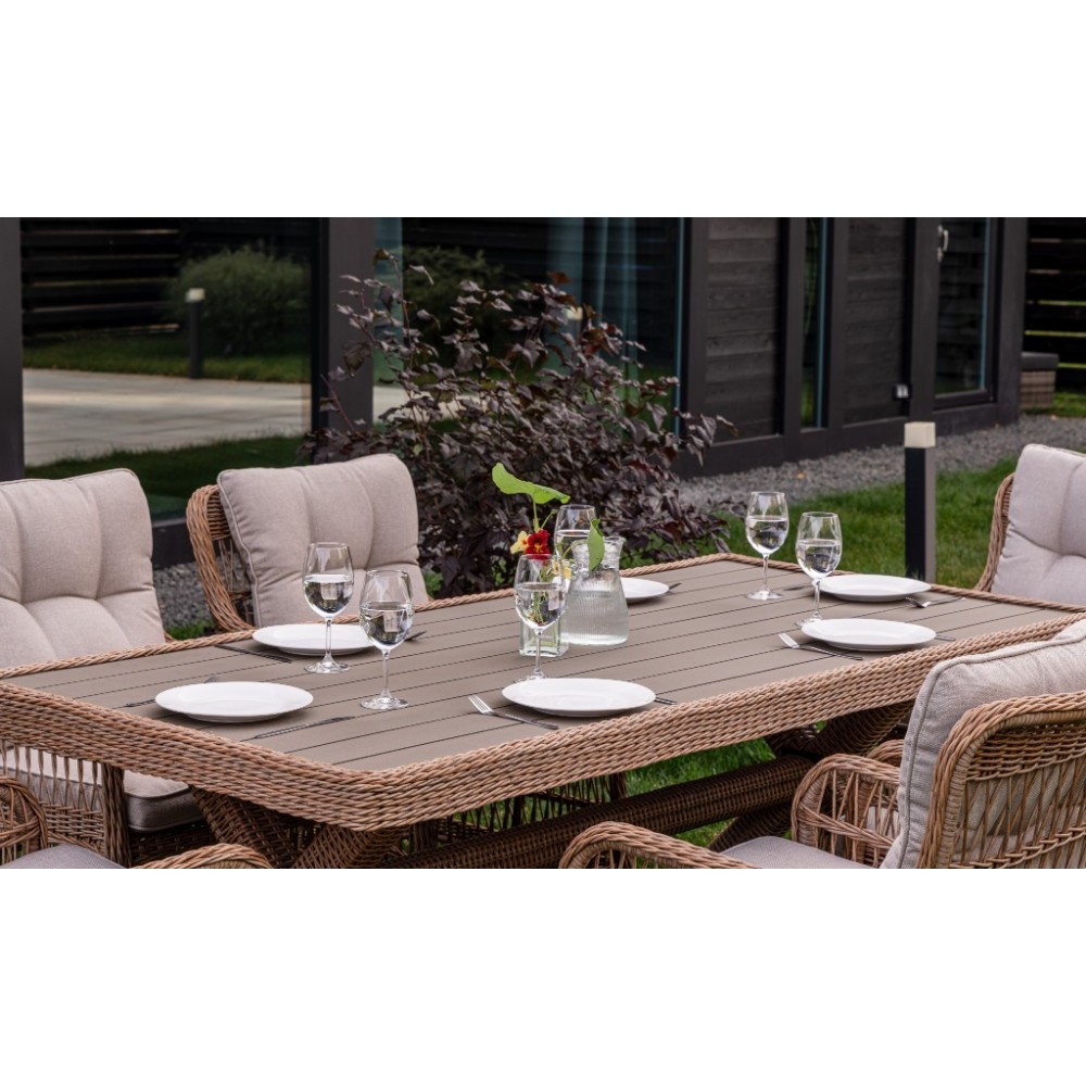 Комплект мебели из искусственного ротанга ИЗАБЕЛЛА на 6 персон, натуральный цвет, столешница из искусственного дерева, алюминиевый каркас, подушки входят в набор.