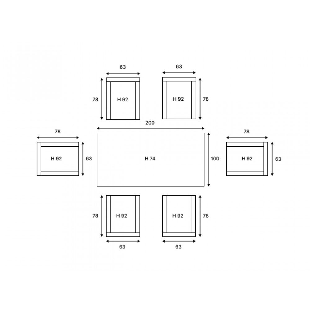 - Кресло (6 шт): 78*63*92 см
