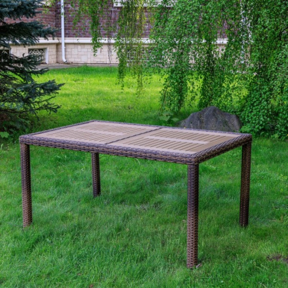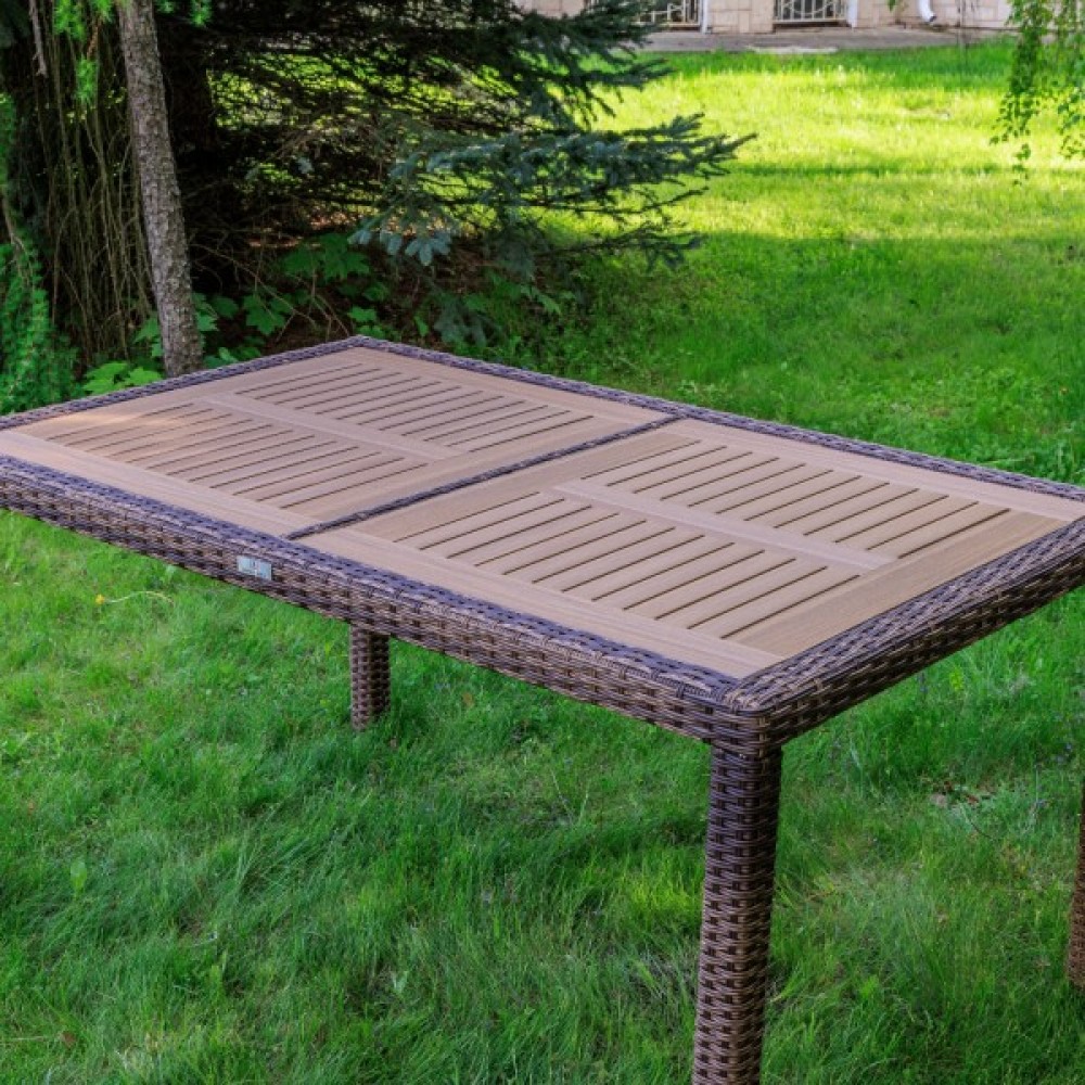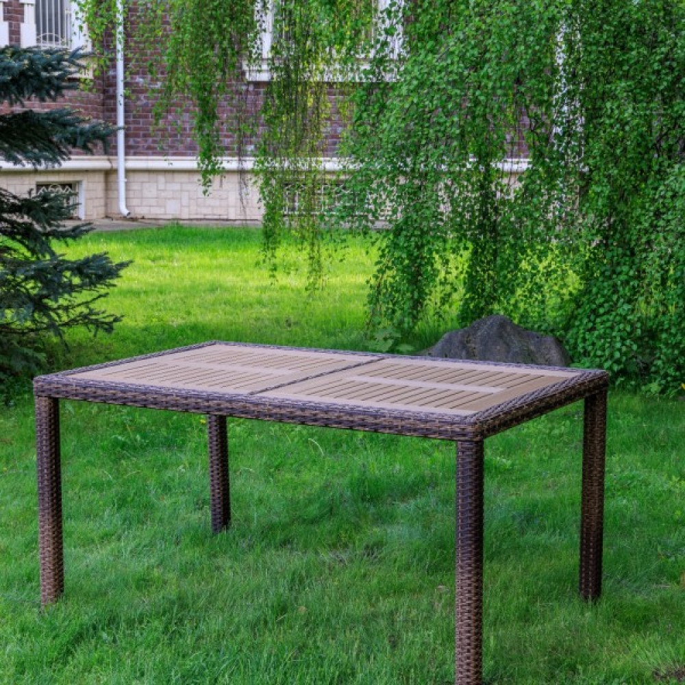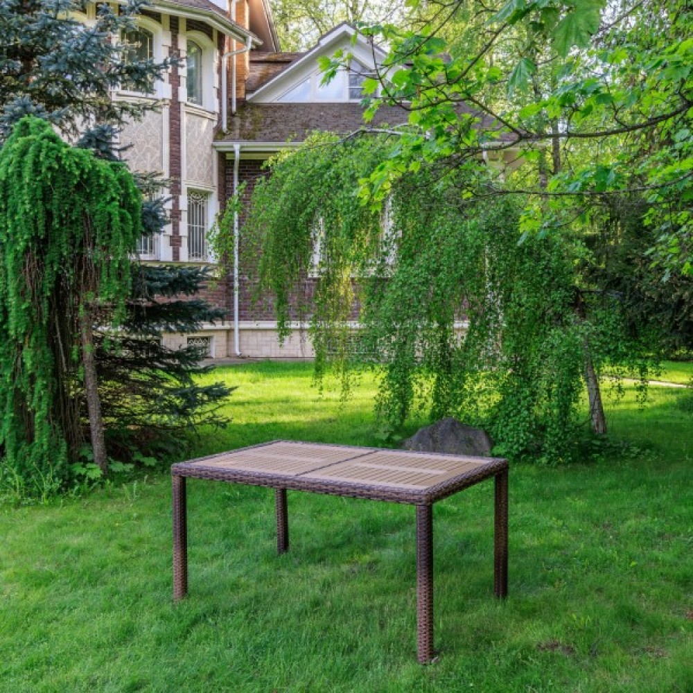 Материал стола — искусственный ротанг (ручного плетения)