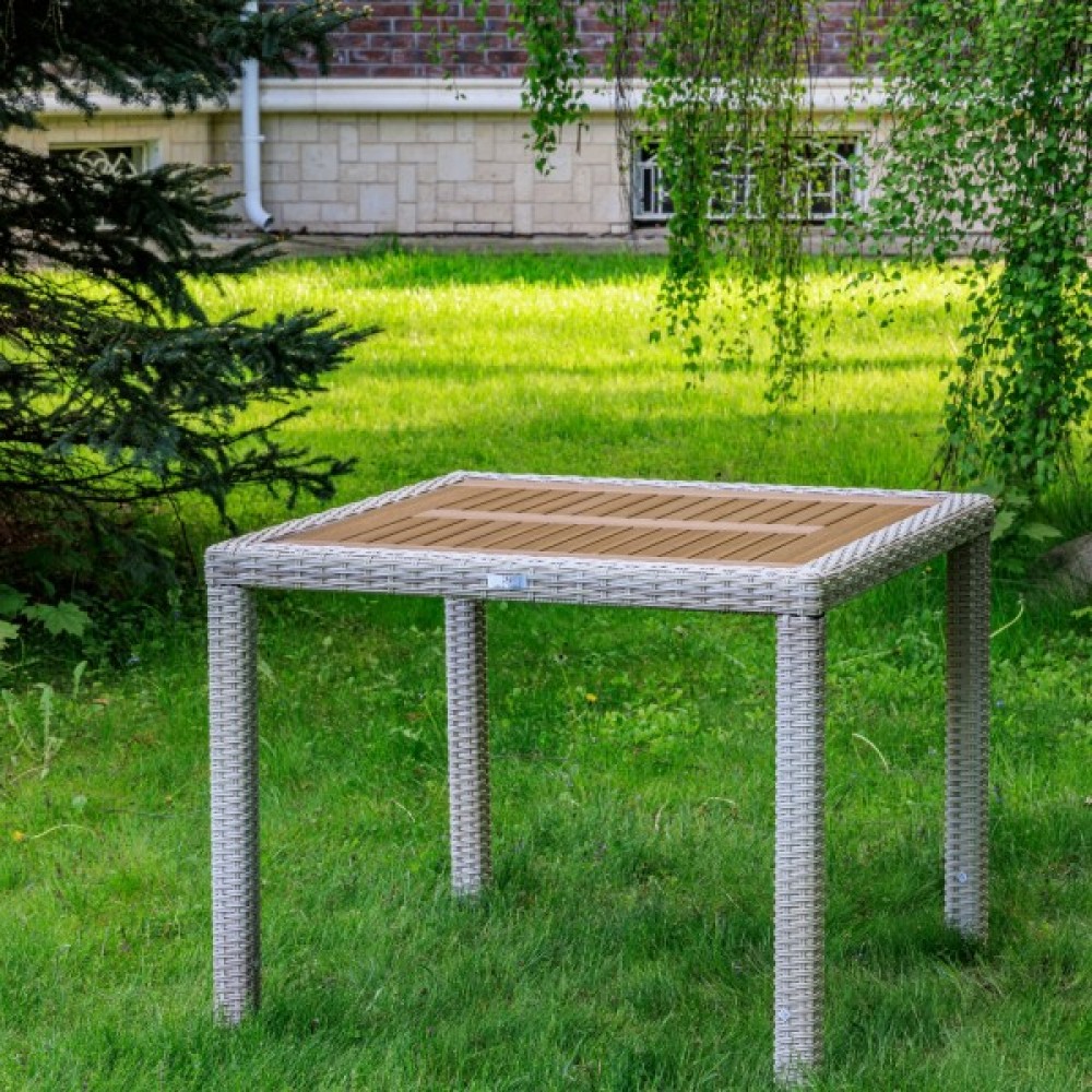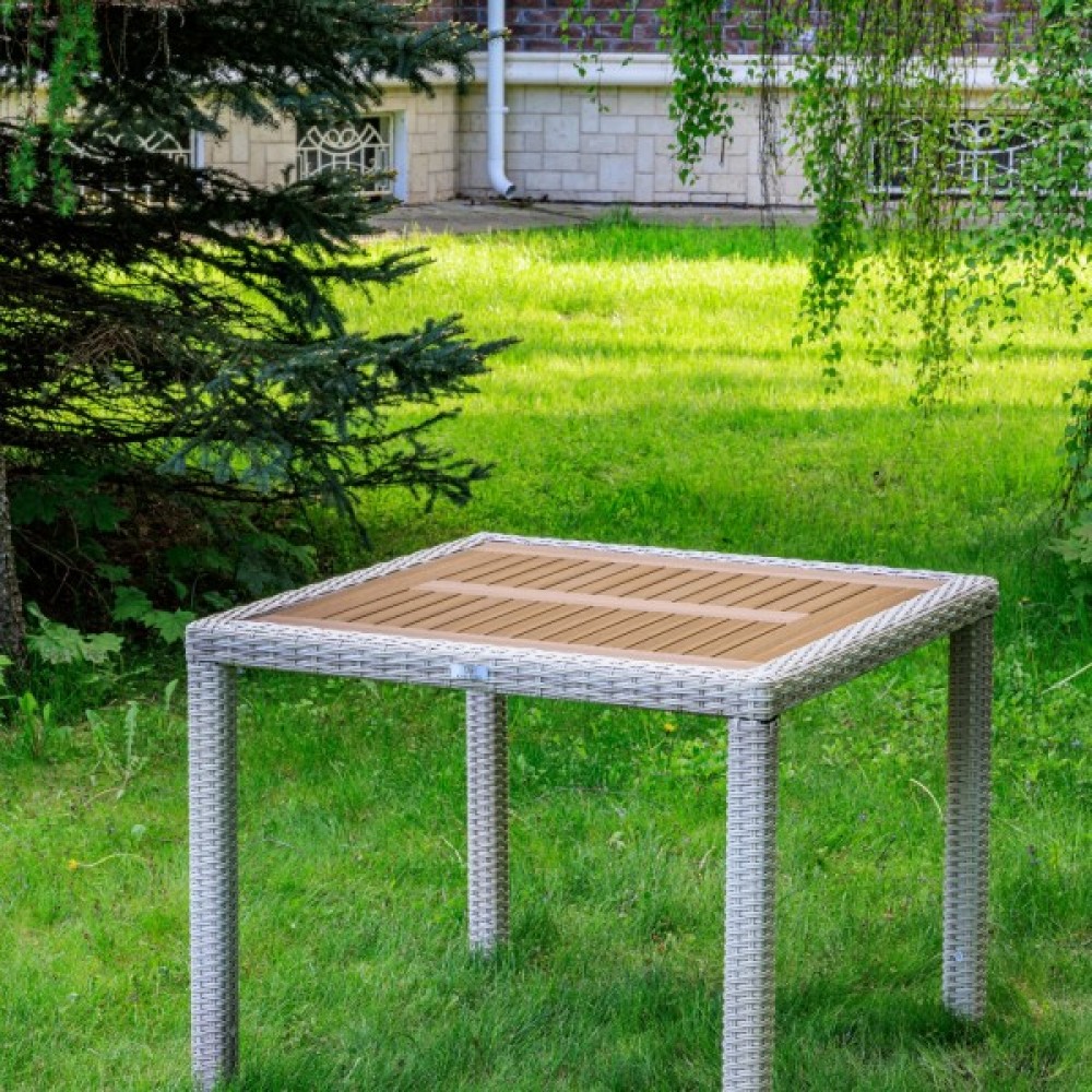 Материал стола — искусственный ротанг (ручного плетения)
