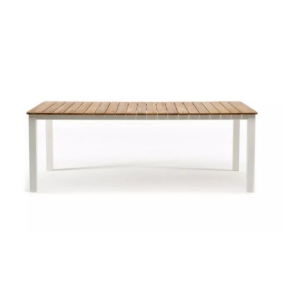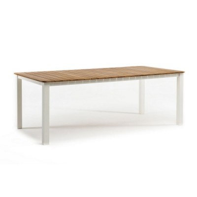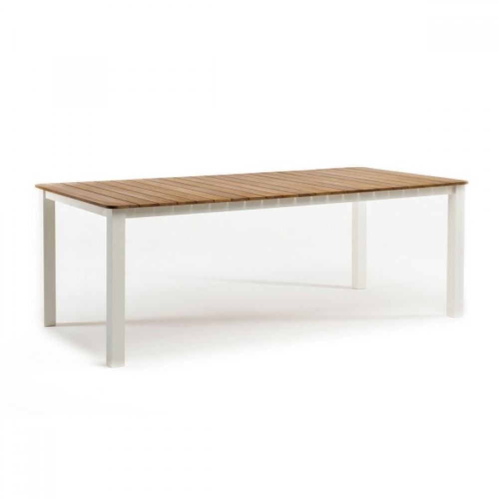 Каркас из алюминия с порошковым покрытием в белом матовом цвете обеспечивает защиту от коррозии, а элементы из массива тика, обработанные натуральным маслом, добавляют естественного тепла.