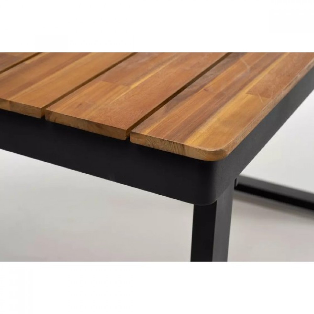 Материал каркаса — легкий и прочный алюминий, который обеспечивает устойчивость и долговечность. Дополняют конструкцию элегантные деревянные элементы, выполненные из массива акации.