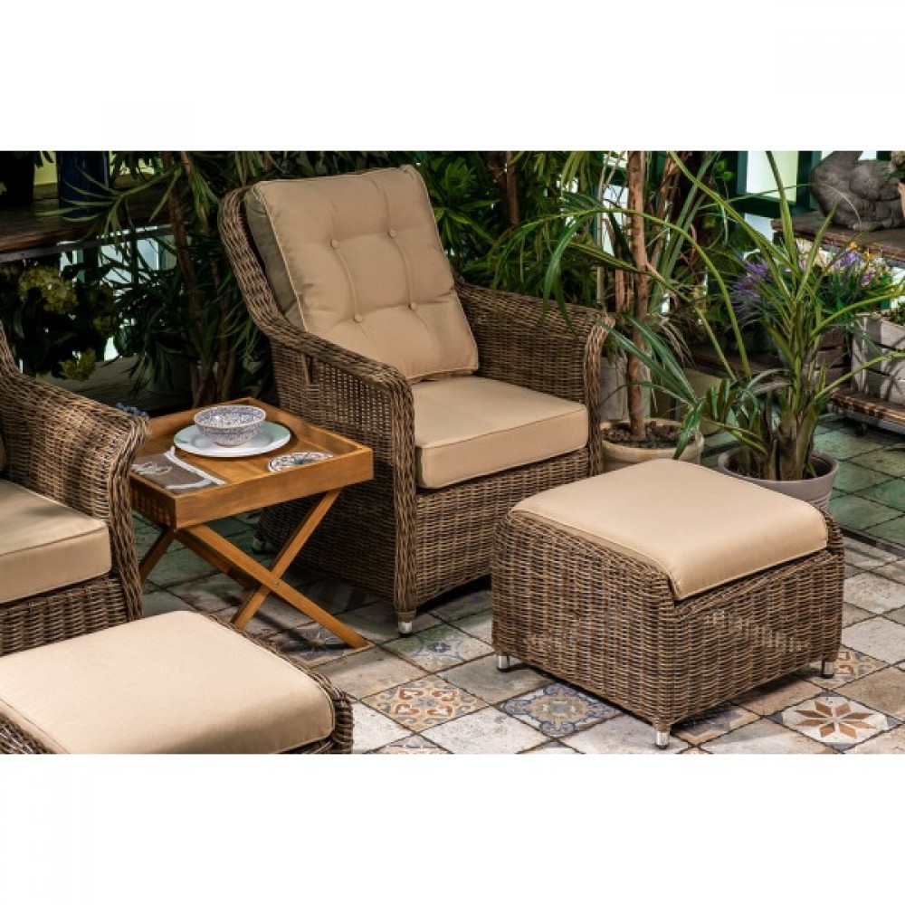 Классика садовой мебели – большие удобные подушки, круглое плетение солидной толщины. Элегантность и стиль вашего патио!