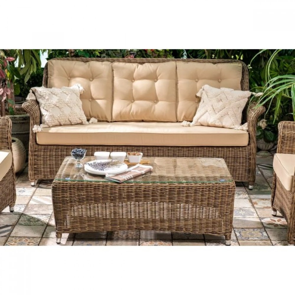 Классика садовой мебели – большие удобные подушки, круглое плетение солидной толщины. Элегантность и стиль вашего патио!