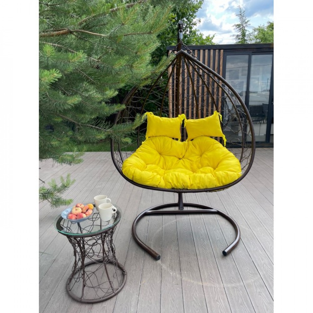 Подвесное кресло FISHT для двоих! Подвесные кресла - наша особая гордость! Изготавливаем на собственной фабрике с помощью наших мастеров плетения. Искусственный ротанг - удивительный материал, он легкий и одновременно прочный, устойчив к влаге и ультрафиолетовому излучению, не нуждается в специальном уходе и хранении. Подушка выполнена из велюра. Не требует специального ухода. И что очень важно сегодня, в стремлении сохранить и сберечь природу, искусственный ротанг может быть повторно переработан! Металлические каркасы нашей мебели крепкие и надежные, не боятся холода, жары и влаги, поэтому не подвержены коррозии, что увеличивает срок эксплуатации до 30 лет.