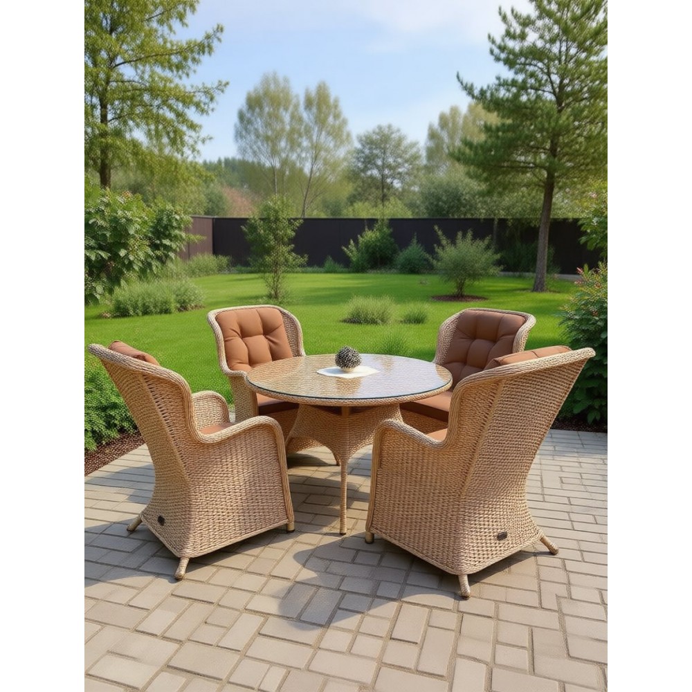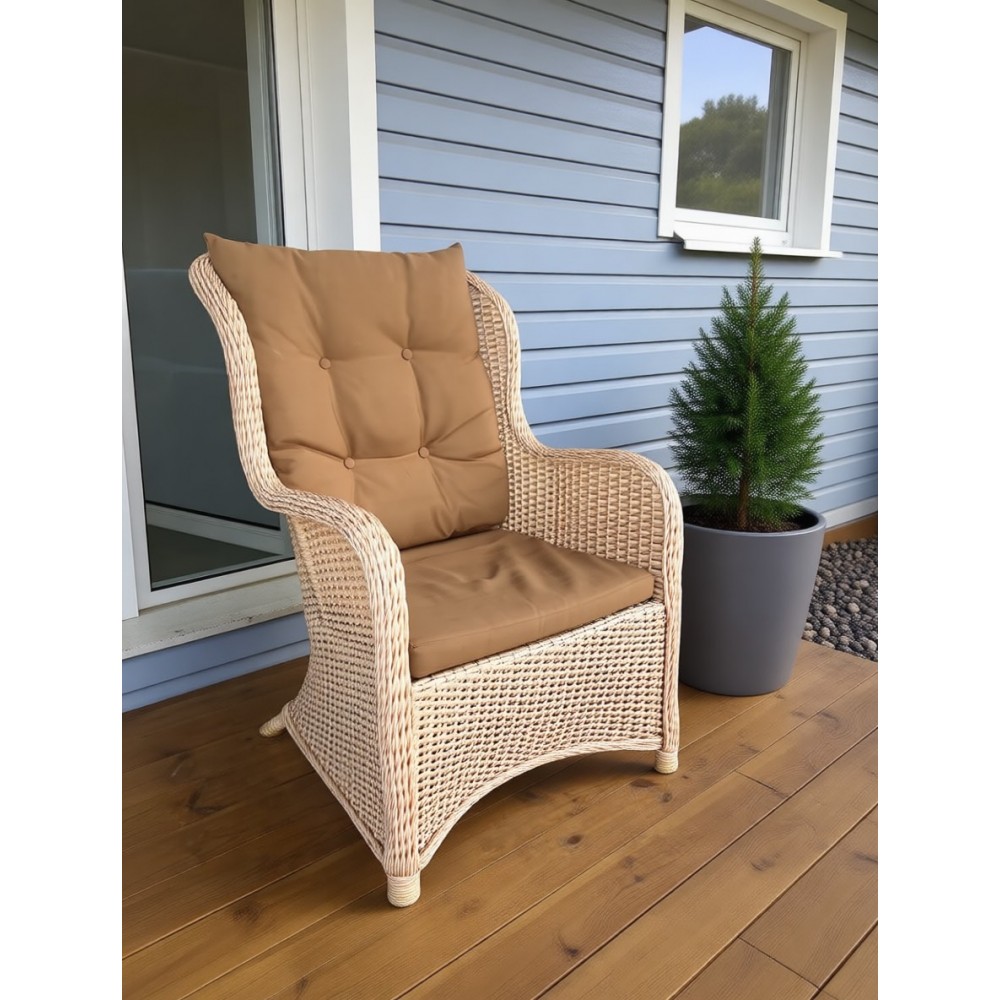 Кресло к комплекту AMARANT. Прочный стальной каркас, окрашенный порошковым методом. Нить сфера. Экоротанг высшего качества. Изделие не боится влаги, прямых солнечных лучей, мороза. Температура эксплуатации от -16 до + 50. Легко моется. Не требует особого ухода. Подушки в комплекте. Гарантия 2 года.