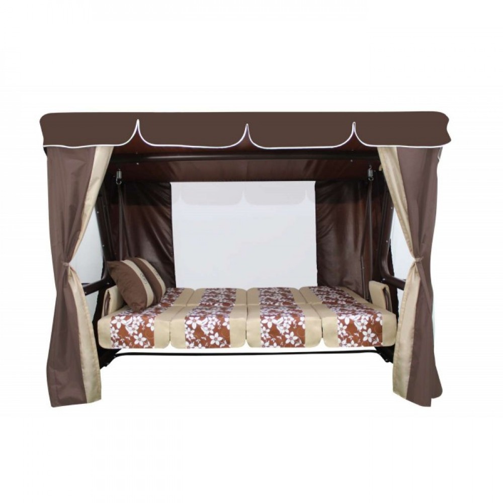 Каркас садовых качелей Эдем Премиум изготовлен из трубы диаметром 76 мм. Форма крыши - прямая. Модель покрыта порошковой краской высокого качества, поэтому легко переносит как воздействие высоких и низких температур, так и солнечных лучей. Качели не утратят своего первоначального внешнего вида ни от яркого солнца, ни от зимних морозов и снежного покрова. Дополнительным преимуществом служит тент-шатер с антимоскитной сеткой, удобно застегивающейся на молнии. Размер в собранном виде 2770х1700х1730. Максимальная нагрузка 500 кг. В комплектацию качели входят: 4 подушки кресла с увеличенными подголовниками. Чехлы подушек изготовлены из высокопрочной ткани с водоотталкивающим покрытием, наполнение - листовой поролон 100 мм., 4 дополнительные подушки, 2 мягких подлокотника, 2 металлических подстаканника, светодиодный фонарь. Раскладывается в полноценную кровать, длина сиденья 1990 мм., регулировка наклона спинки звеньями цепи, фиксируется защелками на металлической перекладине." />