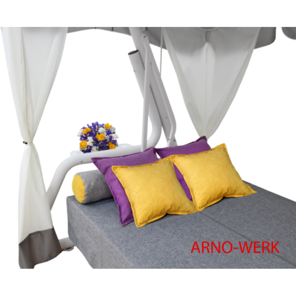 Эстетика скандинавского стиля соблюдена в модели качелей Герда со всеми основополагающими признаками. Это преобладание в дизайне пастельных тонов, но основным цветом, без сомнения, можно назвать белый. Очарование и выразительность придают сочные цветные акценты в виде ярких подушек. Простота, спокойствие, лаконичность - характерные черты Герды." />