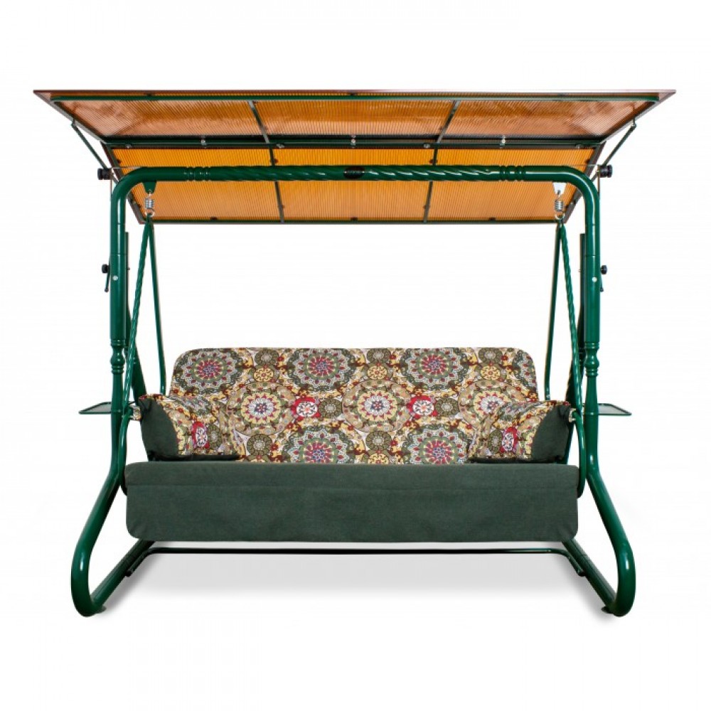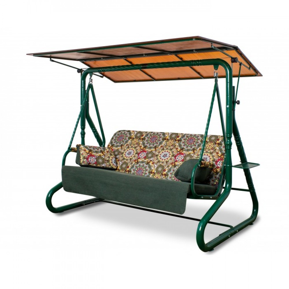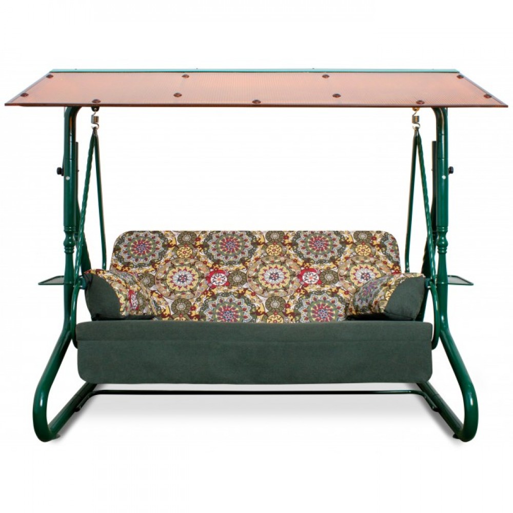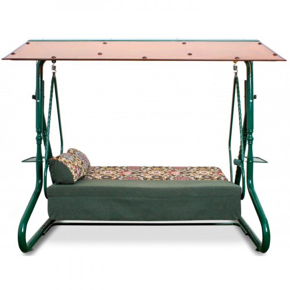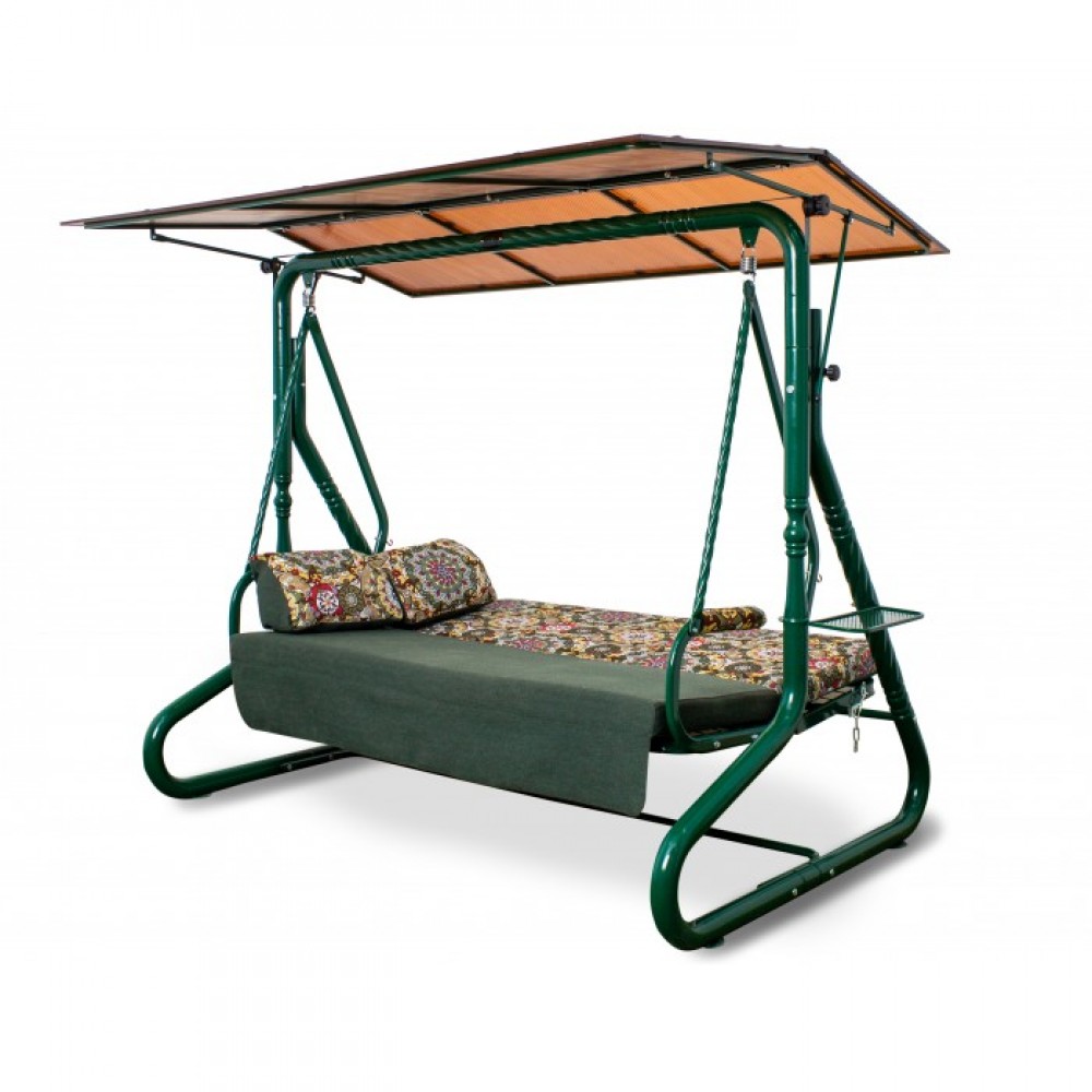 Легкие и компактные качели «УДАЧИ» с поликарбонатным тентом уверенно займут свое место в любом уголке вашего сада. Прочному каркасу добавляют изящества витые кованые элементы. Вся конструкция надежна и устойчива, а от дождя защитит тент. Сиденье рассчитано на трех человек, к тому же может трансформироваться в полноценную кровать. Акварельные тона дивана располагают к тихому и уютному отдыху теплым летним днем или вечерним посиделкам на закате всей семьей. Модель дополнена двумя удобными подушками и функциональными подстаканниками.