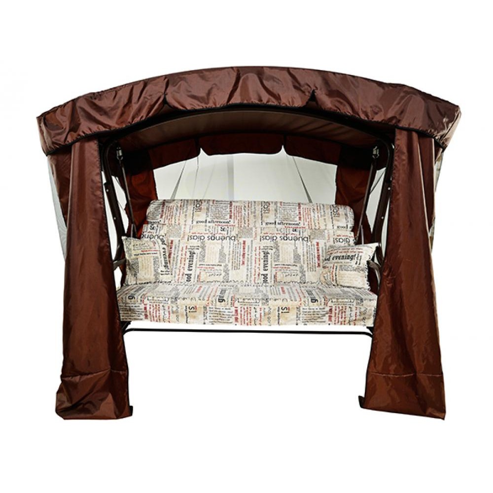 Подголовник Да Размер сиденья и спинки, мм 1800 х 530 Количество мест 3 Вес, кг 65 Размер (Д х Ш х В), мм 2550 х 1500 х 1750 Диаметр трубы, мм 60 Допустимая нагрузка, кг 400 Каркас сиденья Наварная решетка Опора Дуга Комплектация Тент, матрас, подушки 2 шт Толщина матраса, см 8 Наполнитель матраса Холлкон Раскладное сиденье Да Система раскладывания качалки Цепочка Фиксатор тента Цепочка Размер упаковки, мм 2200 х 880 х 220" />