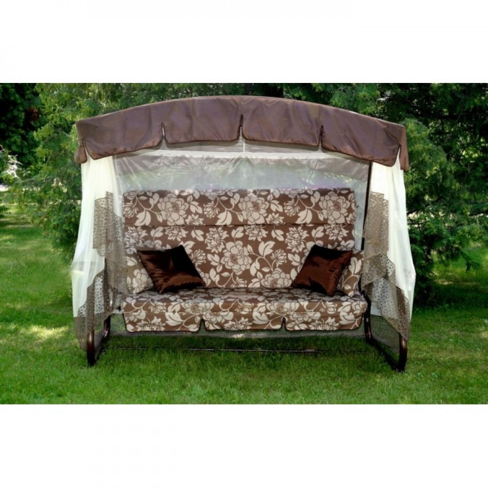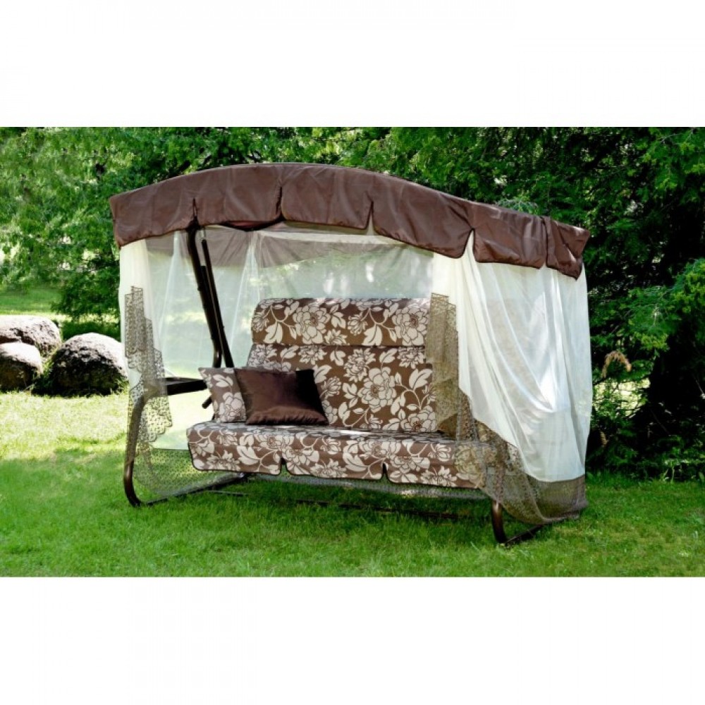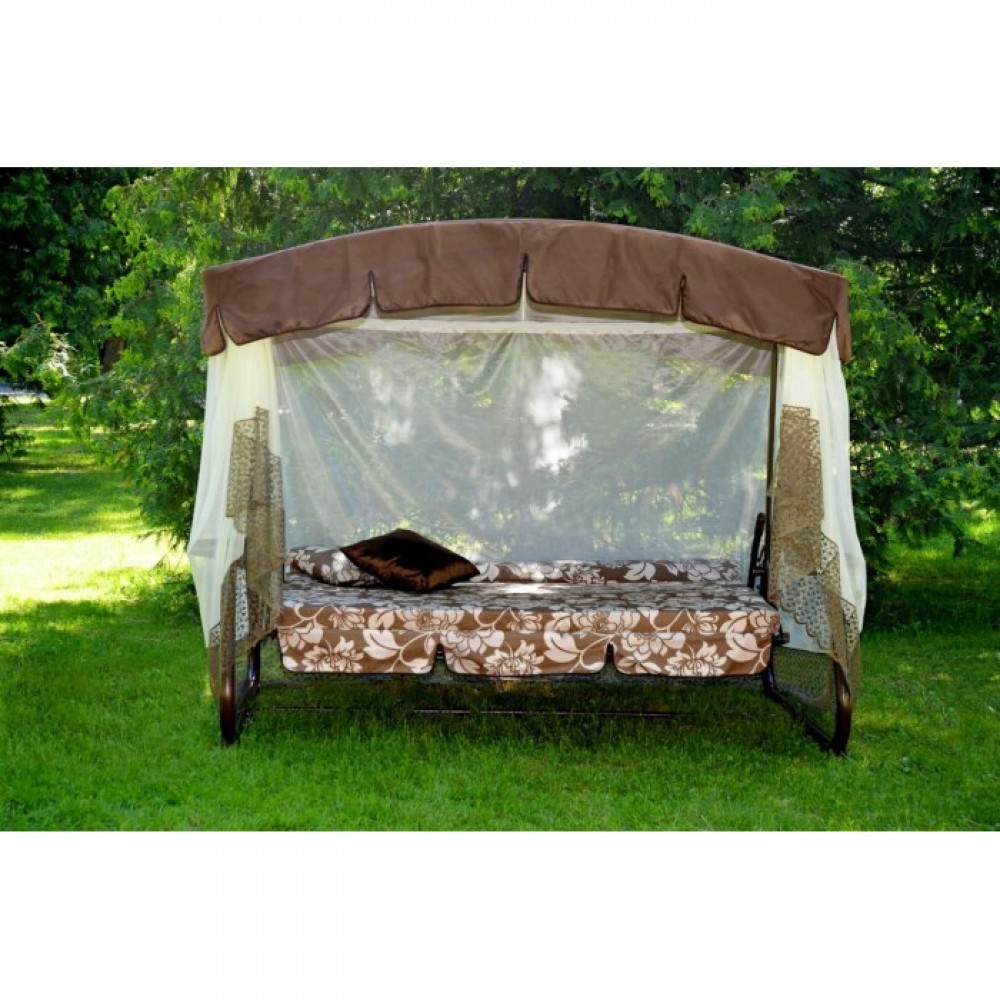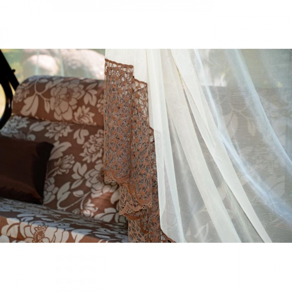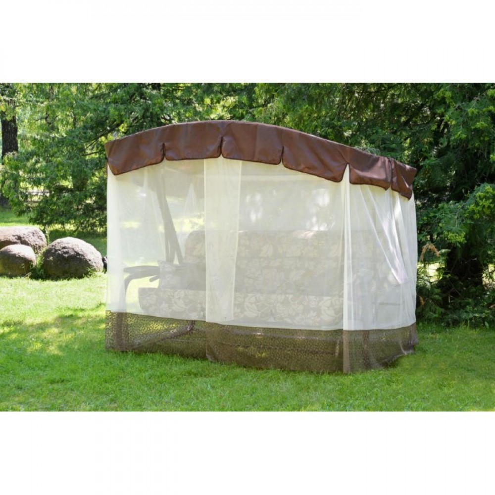 Тент: ткань водоотталкивающей отделкой 100% п/э , плотность 120-140 г/м2, с противомоскитной сеткой из белой вуали.