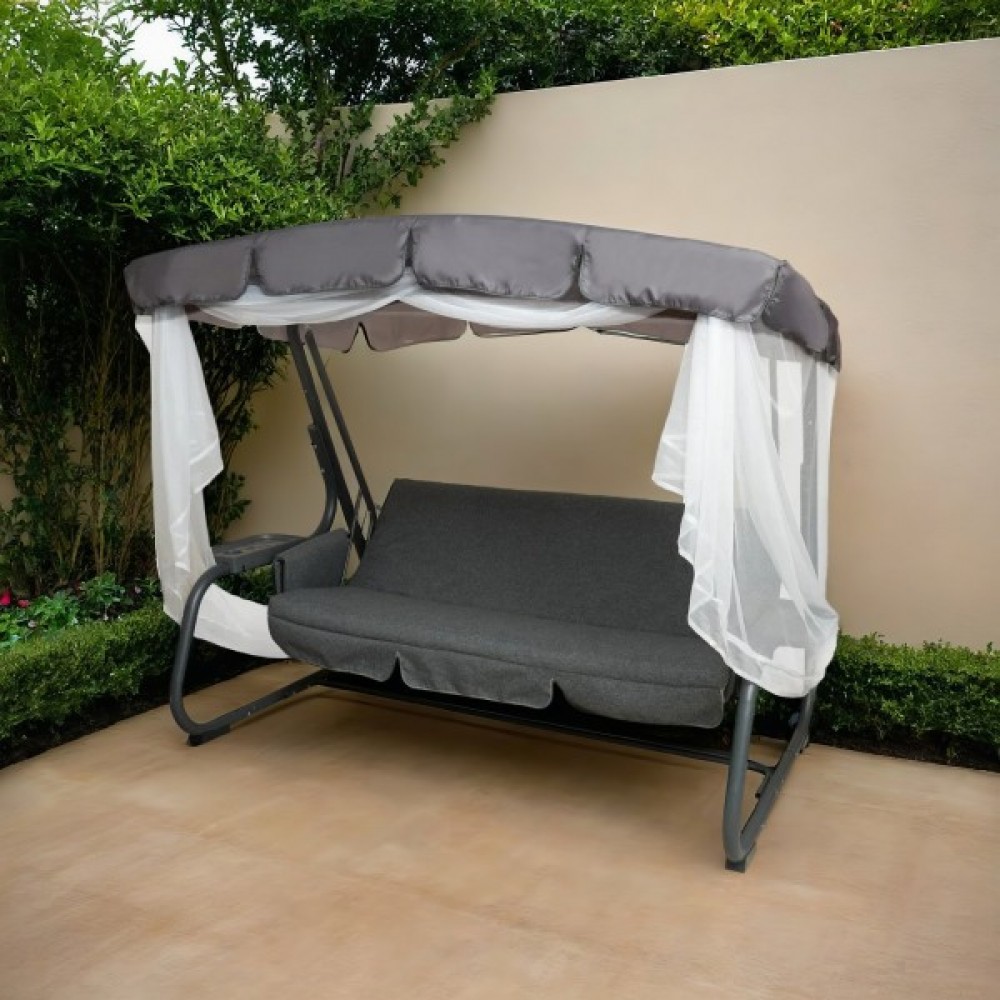 Садовые качели Olsa Турин – это комфортное и стильное решение для отдыха на свежем воздухе. Модель рассчитана на 3 человек, оснащена регулируемой спинкой с возможностью трансформации в спальное место, тентом с водоотталкивающей пропиткой и москитной сеткой. Удобные боковые полки с подстаканниками и мягкие подушки делают отдых ещё приятнее. Каркас выполнен из прочной стальной трубы с полимерным покрытием, устойчив к погодным условиям.