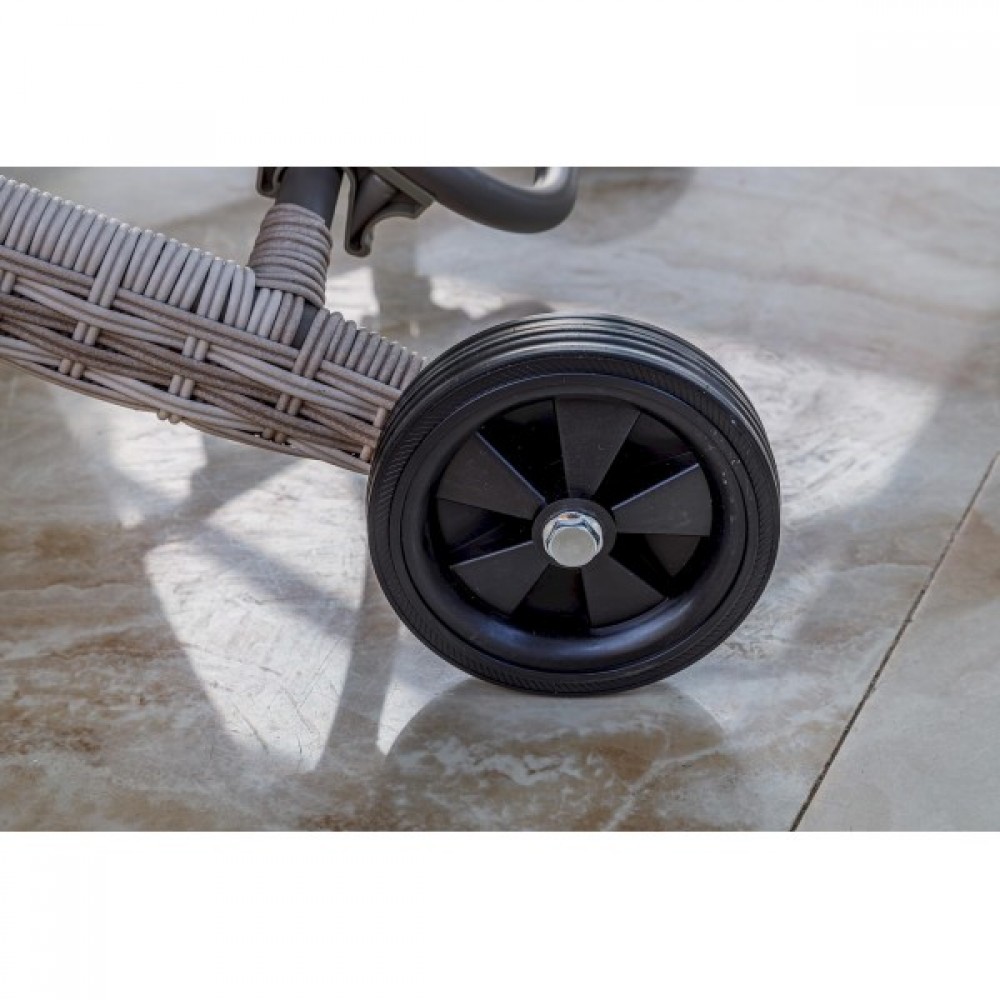 Колесики делают использование шезлонга еще более удобным и практичным.