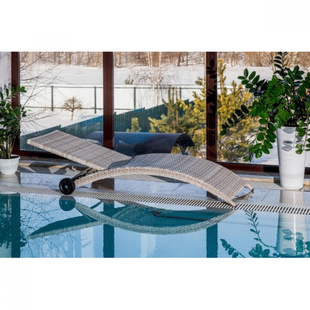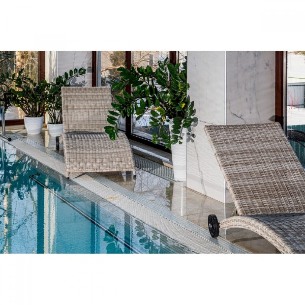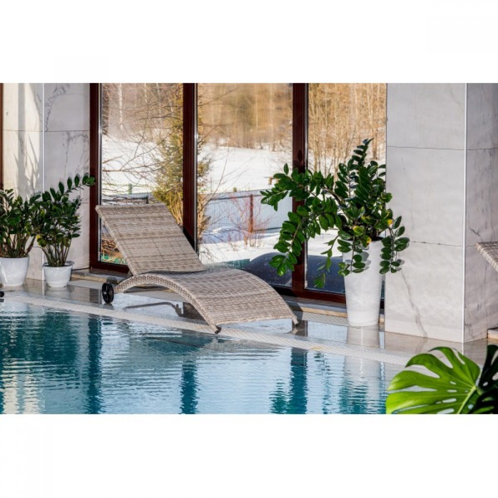 Отдыхайте с комфортом на шезлонге AGATA из искусственного ротанга бежевого цвета!