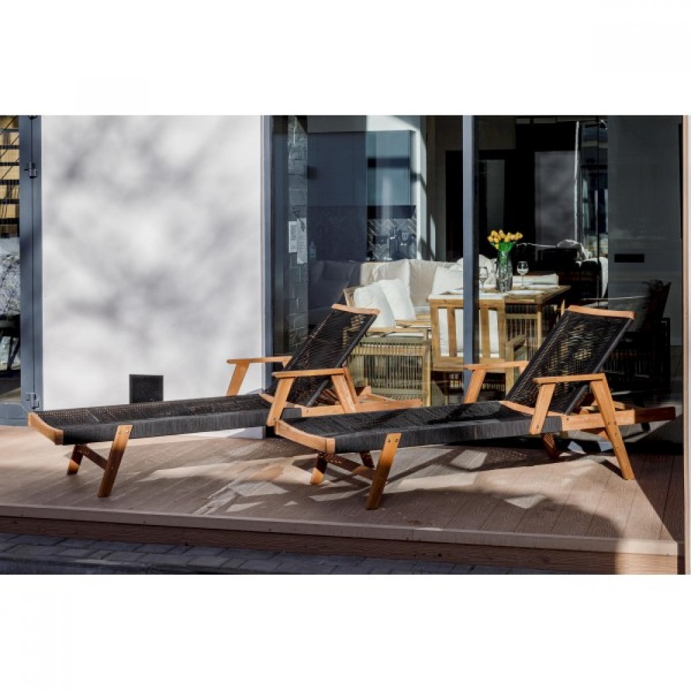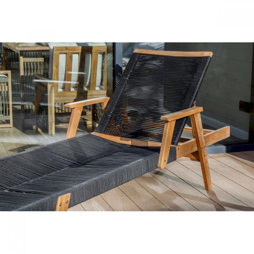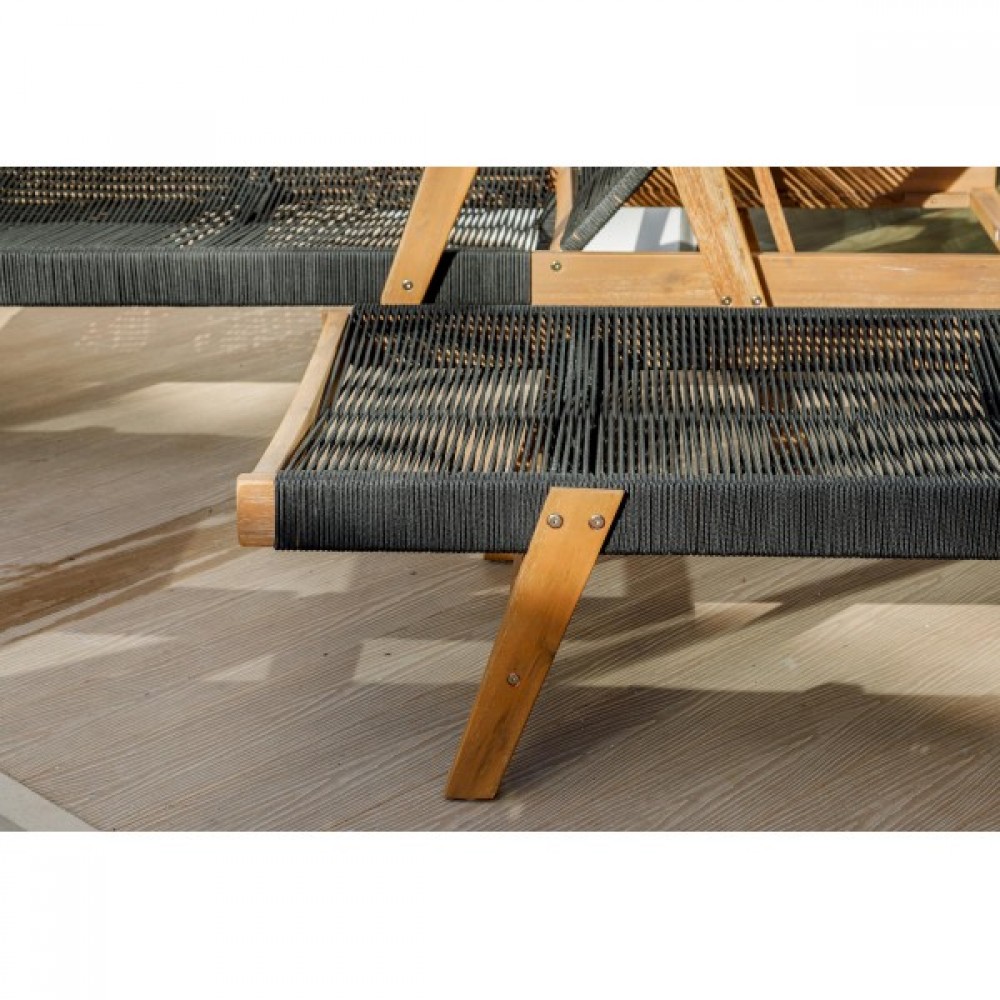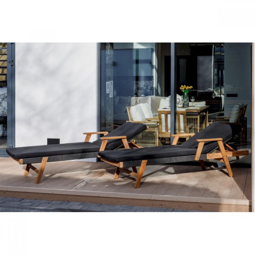 Откройте для себя шезлонг-лежак MICHELLE SUNLOUNGE из натуральной акации с черными подушками! Этот шезлонг идеально подходит для вашего отдыха на свежем воздухе или у бассейна.