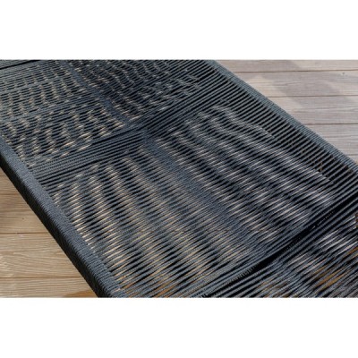 Обивка из роупы придает шезлонгу стильный вид, а чехлы на подушки выполнены из водоотталкивающей ткани олефин. Подушки для сидения наполнены поролоном.