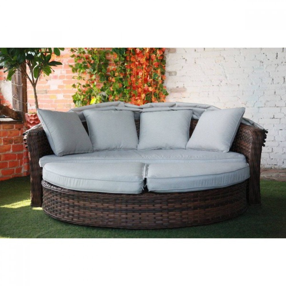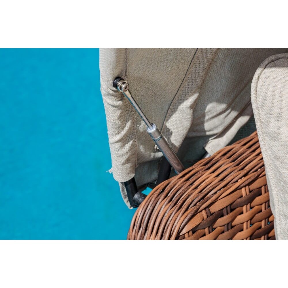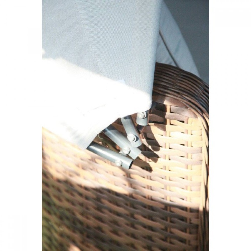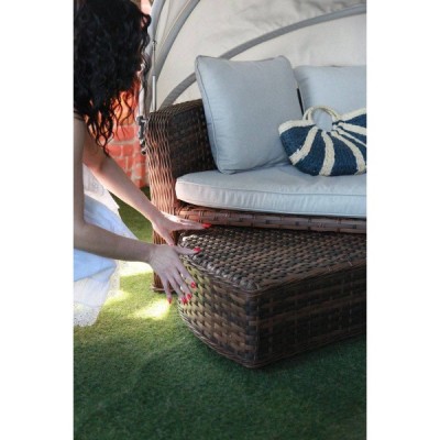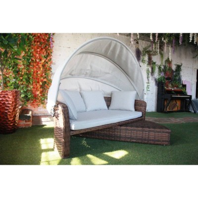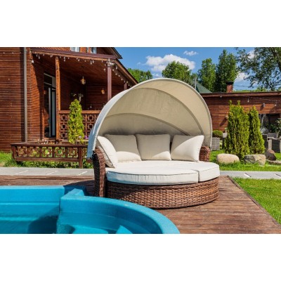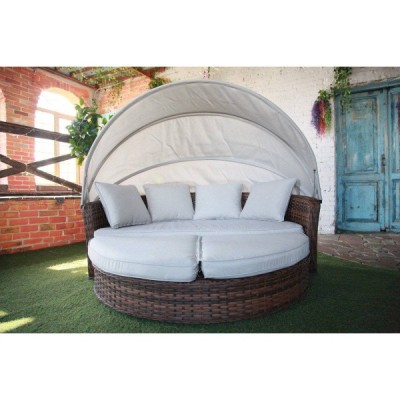 Круглый шезлонг легко трансформируется в компактный полукруглый диван, а солнцезащитный козырек позволит вам наслаждаться свежим воздухом даже в самый знойный летний день.