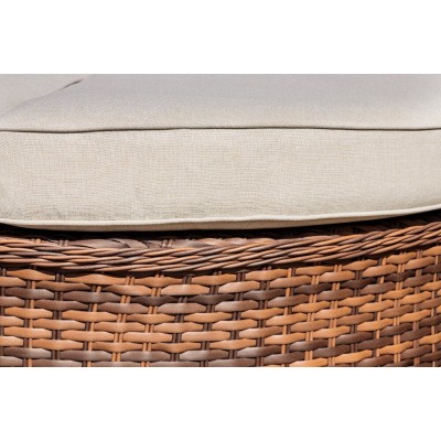 Комбинация круглого и плоского ротанга, ручное плетение. В комплекте с 4 подушками.
