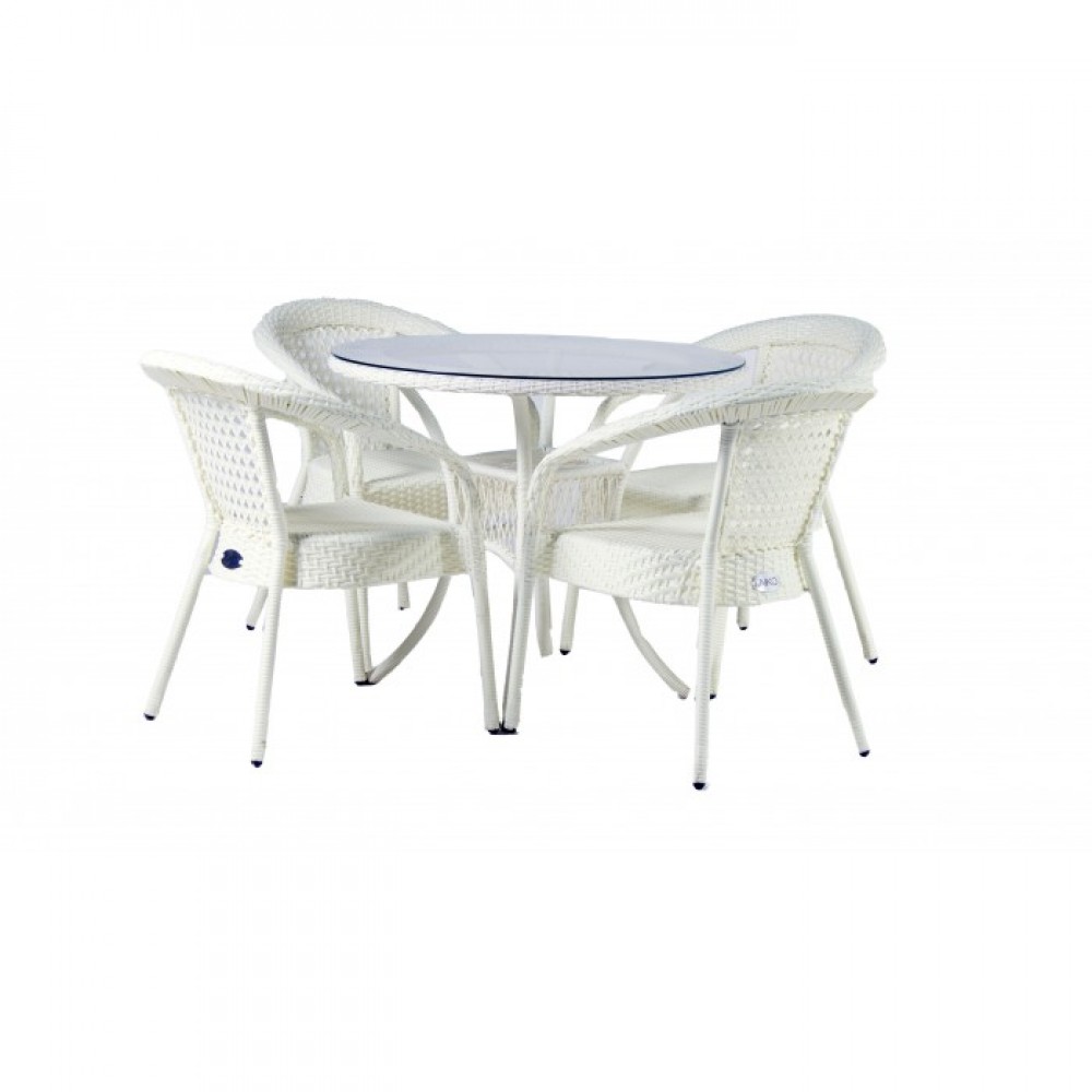 Стол садовый круглый DECO 90 см, слоновая кость к комплекту DEKO. Прочный стальной каркас, окрашенный порошковым методом. Нить плоская. Экоротанг высшего качества. Изделие не боится влаги, прямых солнечных лучей, мороза. Температура эксплуатации от -16 до + 50. Легко моется. Не требует особого ухода. Столешница - каленое стекло 6 мм. Гарантия 2 года!