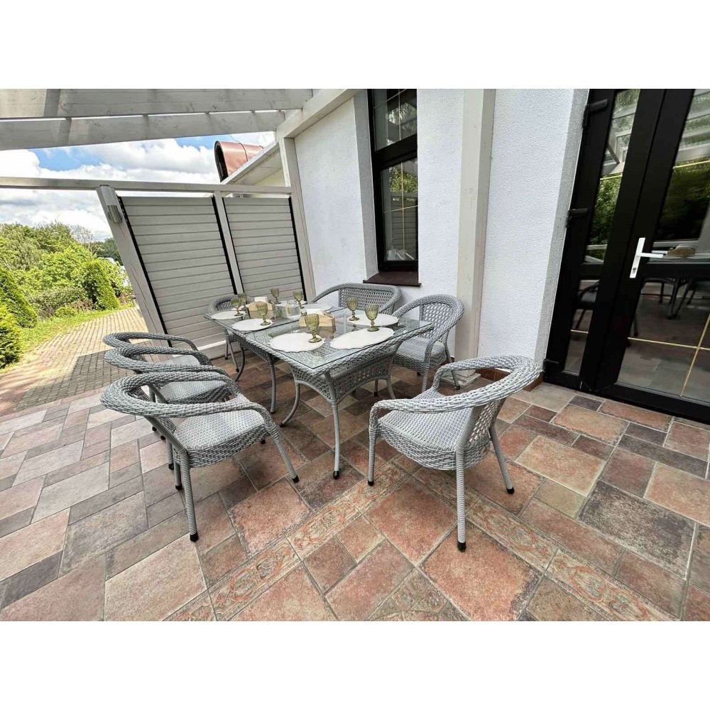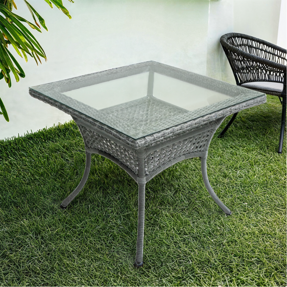 Стол садовый обеденный квадратный DECO, серый к комплекту DECO. Прочный стальной каркас, окрашенный порошковым методом. Нить плоская. Экоротанг высшего качества. Изделие не боится влаги, прямых солнечных лучей, мороза. Температура эксплуатации от -16 до + 50. Нить плоская. Легко моется. Не требует особого ухода. Столешница - каленое стекло 6 мм. Гарантия 2 года!
