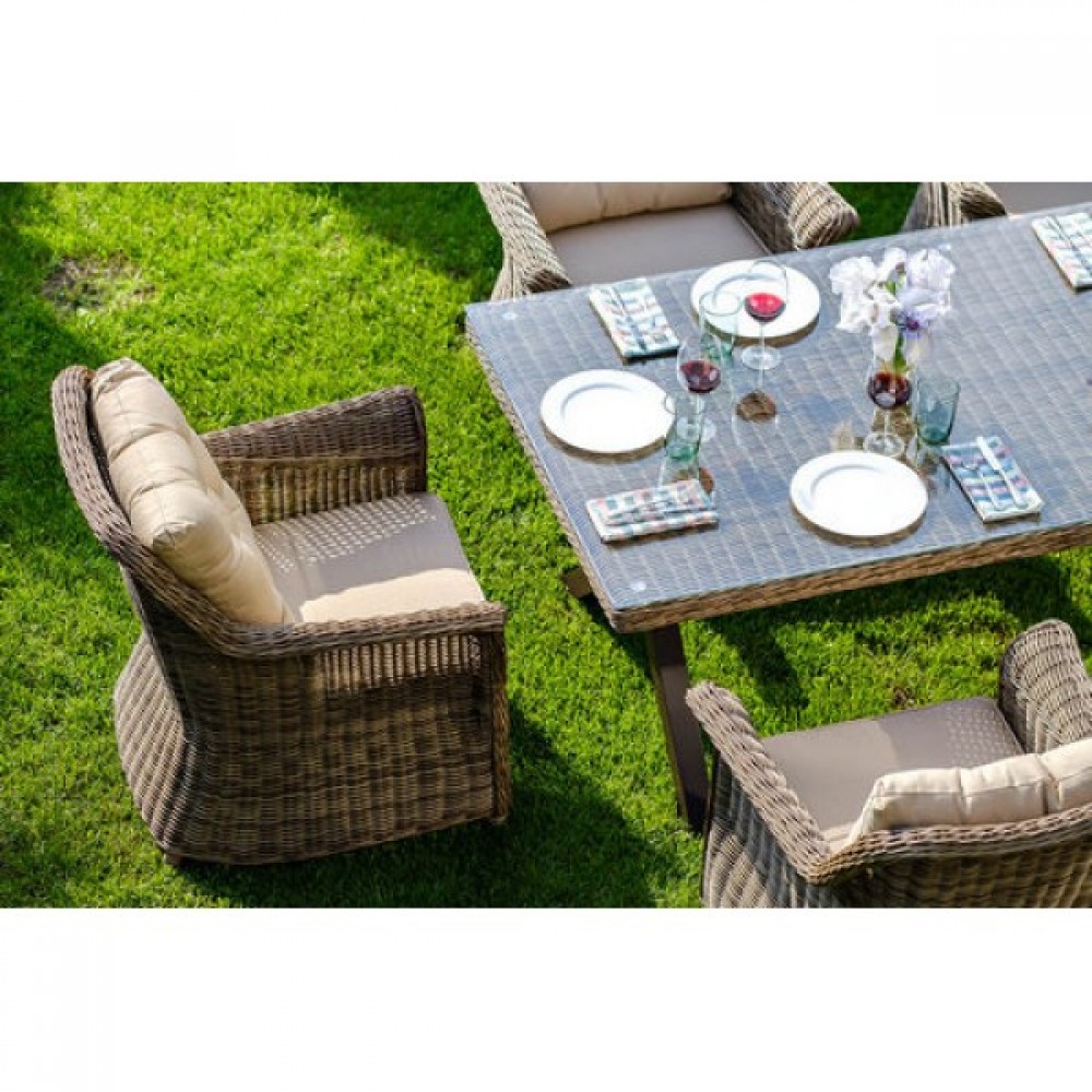 Классика садовой мебели – большие удобные подушки, круглое плетение солидной толщины. Элегантность и стиль вашего патио!