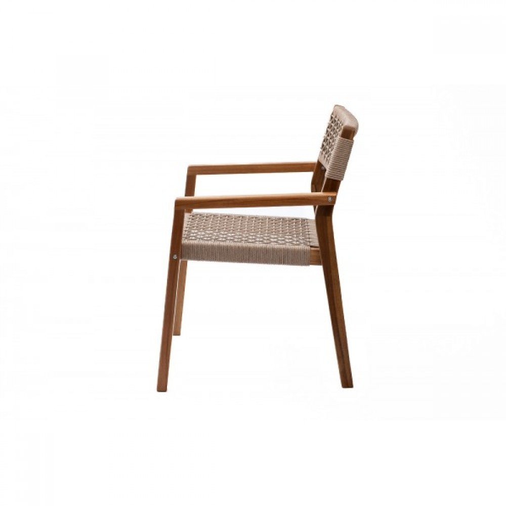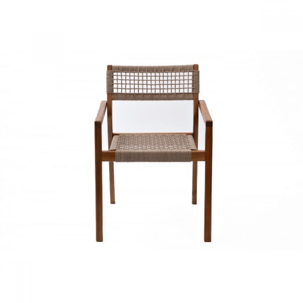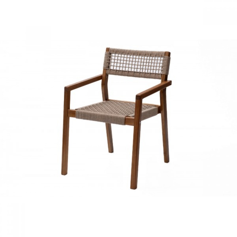 CALISTO – современная коллекция садовой мебели из акации, выполненная в комбинации натурального веревочного плетения rope, массива акации и бежевых подушек.