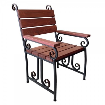 Стул-кресло представляет собой изящное сочетание железа и дерева. Великолепное кресло предаст изящность и дополнит Ваш уют.