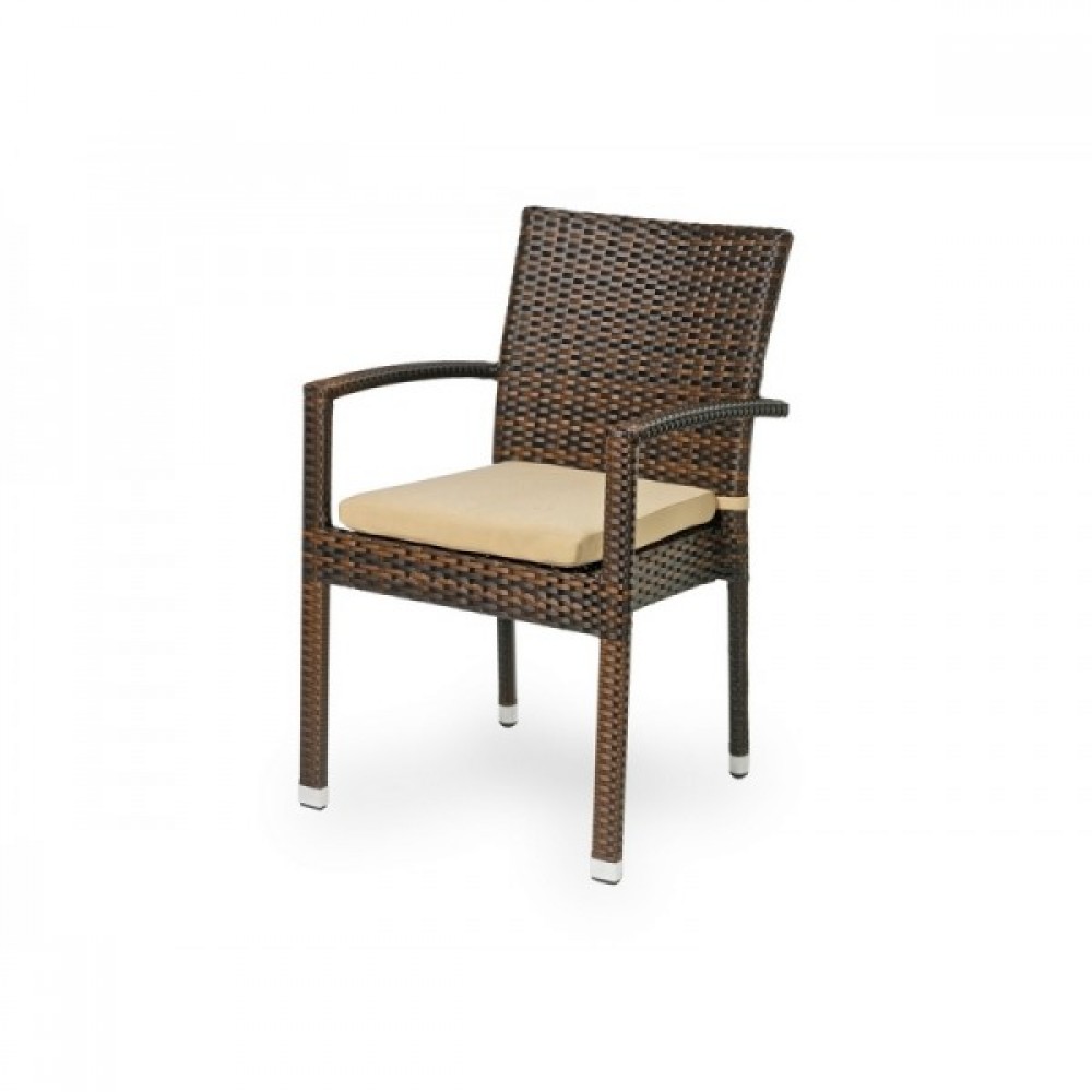 Классическая комбинация темно-коричневого плоского плетения и бежевых подушек. Самый практичный и надежный плетеный стул ,проверенная конструкция, потрясающе удобная и комфортная посадка.В комплекте со стулом идет черная подушка. Больше контраста и стиля для вашей веранды!
