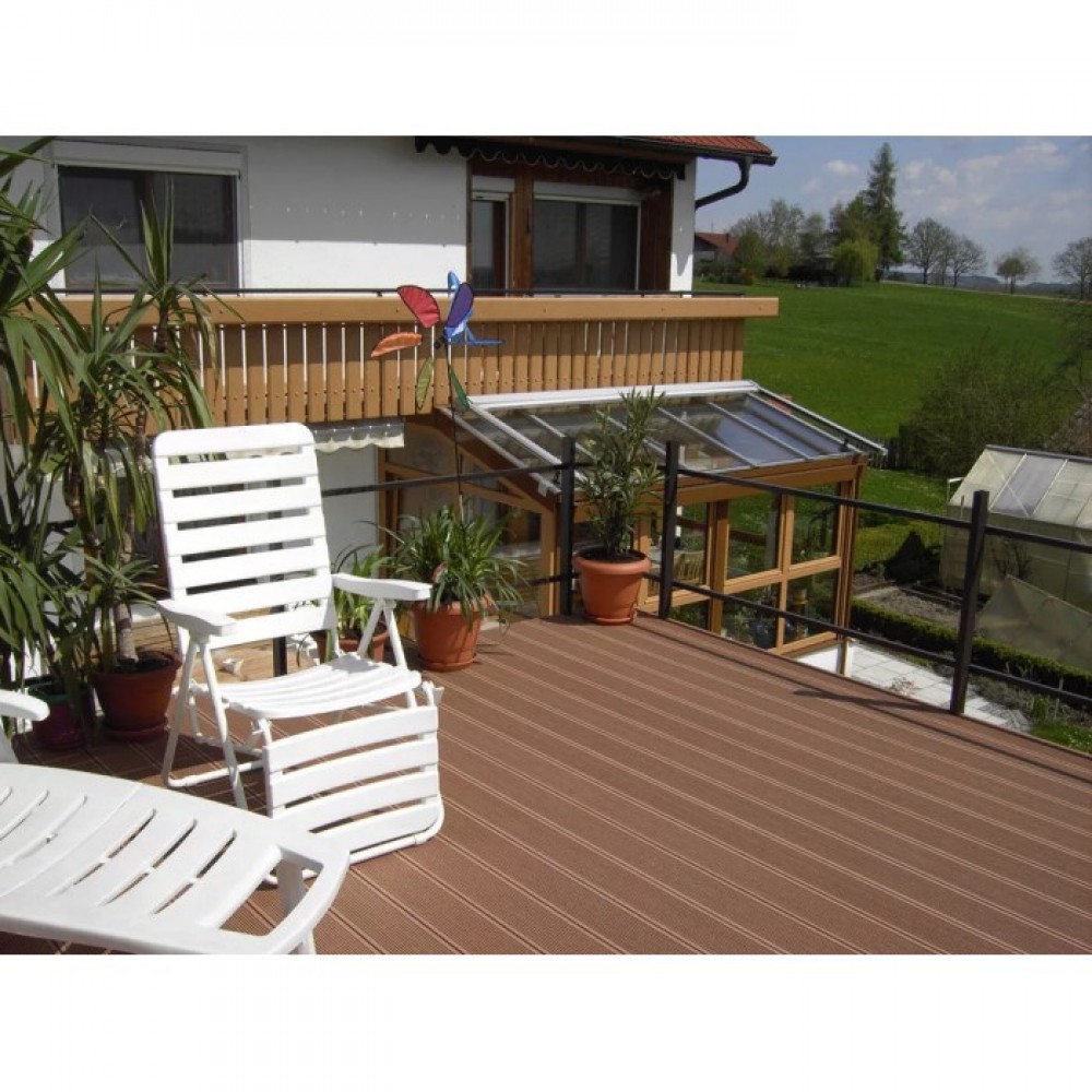 - Террасная доска Декрон состоит из 65% дерева, 30% полимера и 5% пигментов, связующих и прочих добавок.