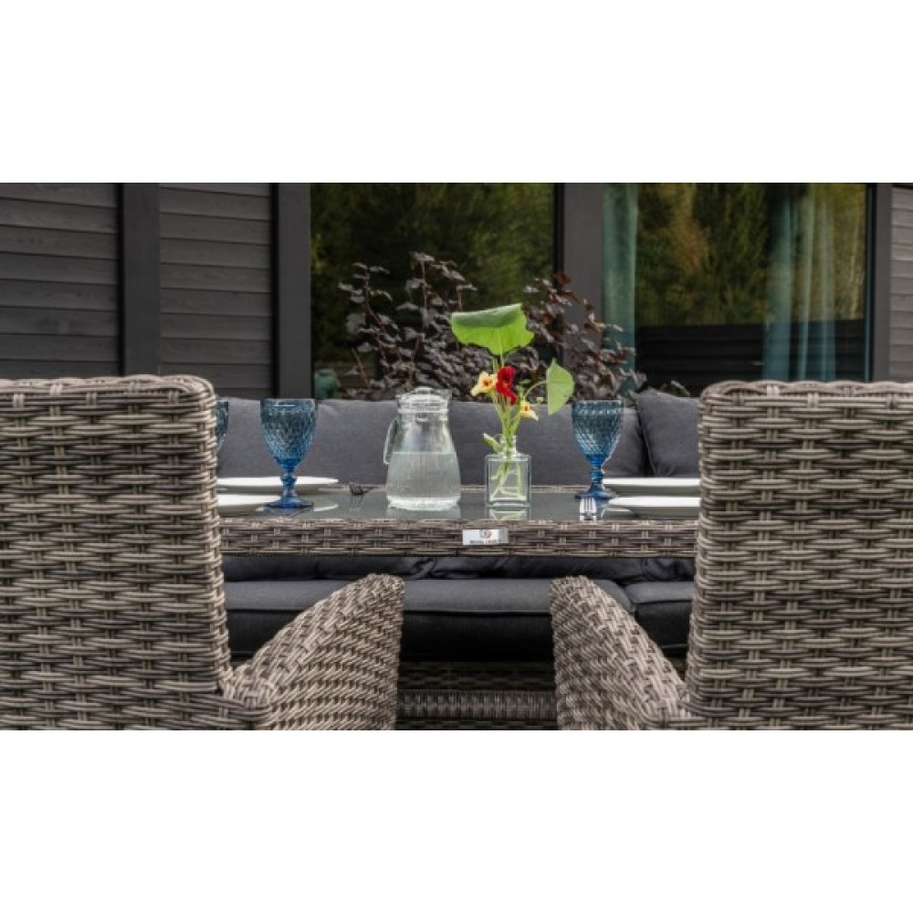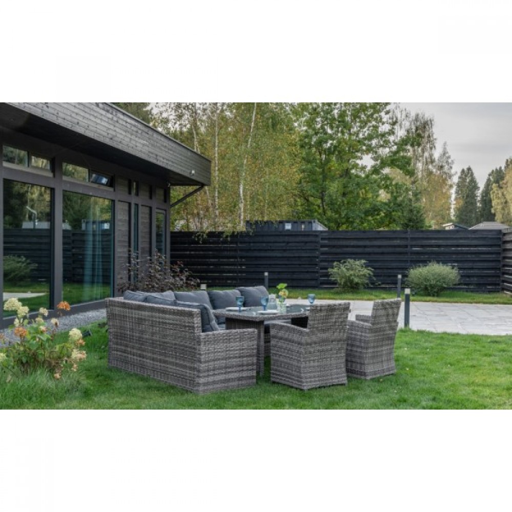 Комплект ZORRO имеет прочный каркас из стали, обтянутый искусственным ротангом, выполненным вручную, а кресло FIONA сделано из алюминиевого каркаса. Коричневый цвет плетения придаст вашему экстерьеру элегантность и гармонично сочетается с другими коричневыми комплектами мебели: GRAND VICKY, ZOYA, KARL, FIONA и VIOLETTA.