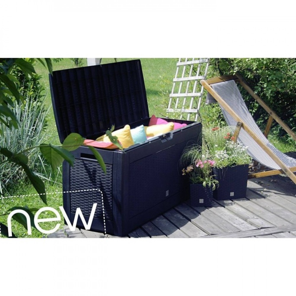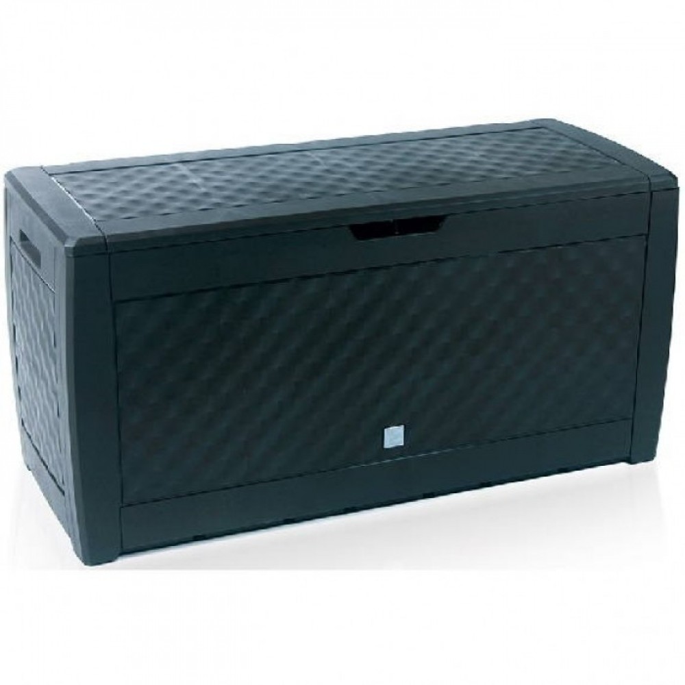 В ящиках для хранения удобно хранить подушки или другие предметы, а также эти ящики можно использовать в качестве столика. Изготовлены из пластика, имитирующего натуральный ротанг, дерево и бамбук. Ящики для хранения легко и быстро собираются без дополнительных инструментов. С двух сторон имеются ручки для переноски. Благодаря наличию проушины, ящик можно закрыть навесным замком.