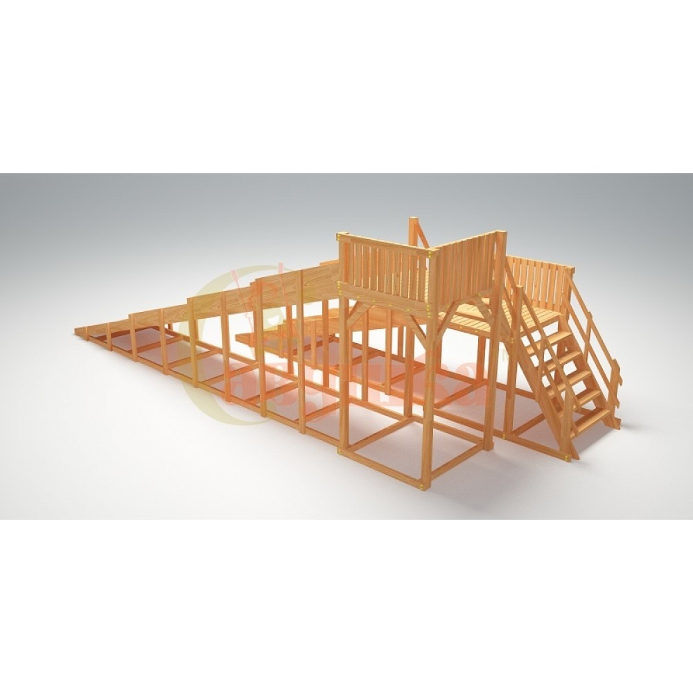 Двухскатная модель современного игрового комплекса Савушка «Зима Wood»-7 – лучший выбор для общественных парков или домов отдыха.